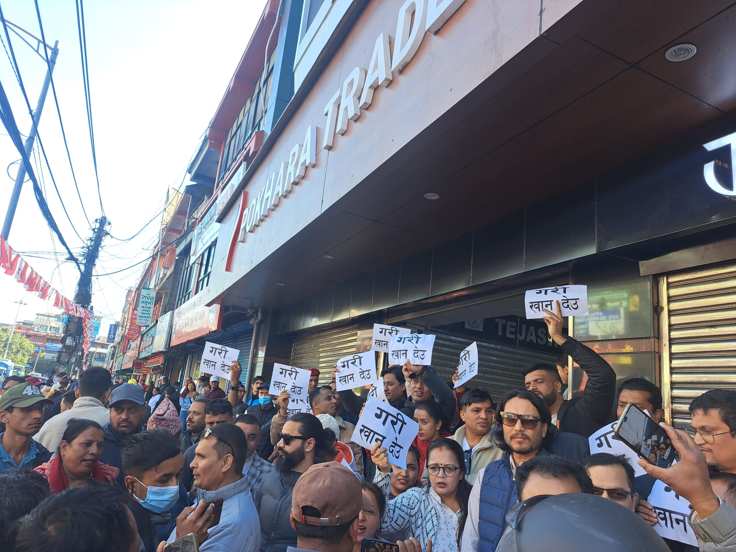 प्रचण्ड-माधव आउने ट्रेडमलअघि नेकपाको सभामा झडप, ‘गरि खान देउ’ भन्दै व्यवसायीले गरे विरोध