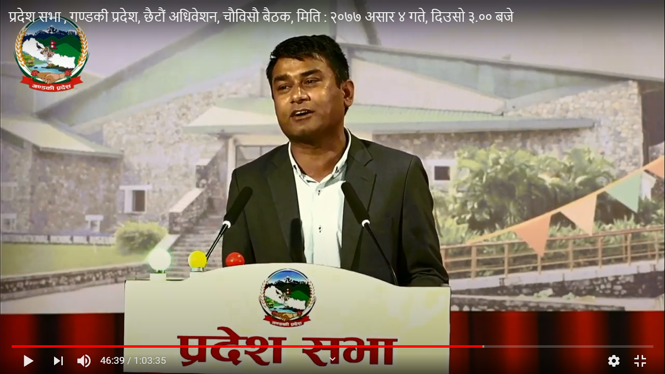 गण्डकी प्रदेश सभामा बजेटमाथिकाे छलफलका क्रममा प्रदेश सभा सदस्य काेइरालाले राखेकाे विचार ।