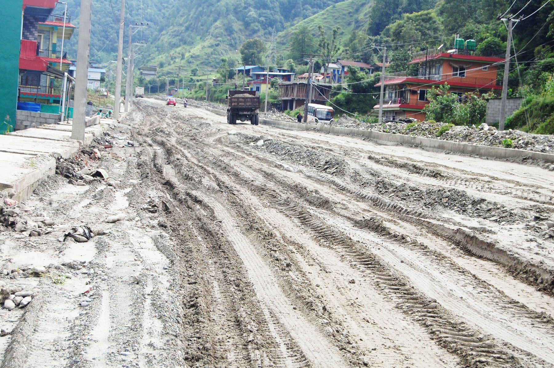 बन्दाबन्दीले लोकमार्गको काम रोकिदा बर्खामा सडक हिलो र पानीले भरिएको छ । कास्कीको अन्नपूर्ण गाउँपालिका र माछापुच्छ«ेसमेतको केही वडावासी सोही सडक भएर यात्रा गर्ने गर्दछन् ।मध्यपहाडी लोकमार्ग विस्तार शुरु भएपछि साविकको दुई लेनको पक्की कालोपत्रे सडक अहिले भत्काइएपछि ठाउँ/ठाउँमा सडकमा पानी जमेर हिलो हुँदा राजमार्गमा यात्रा गर्नेले हैरानी बेहोर्न बाध्य छन् भने अत्यावश्यक एम्बुलेन्ससमेत रोकिने र हिलोमा फस्ने गरेको छ ।