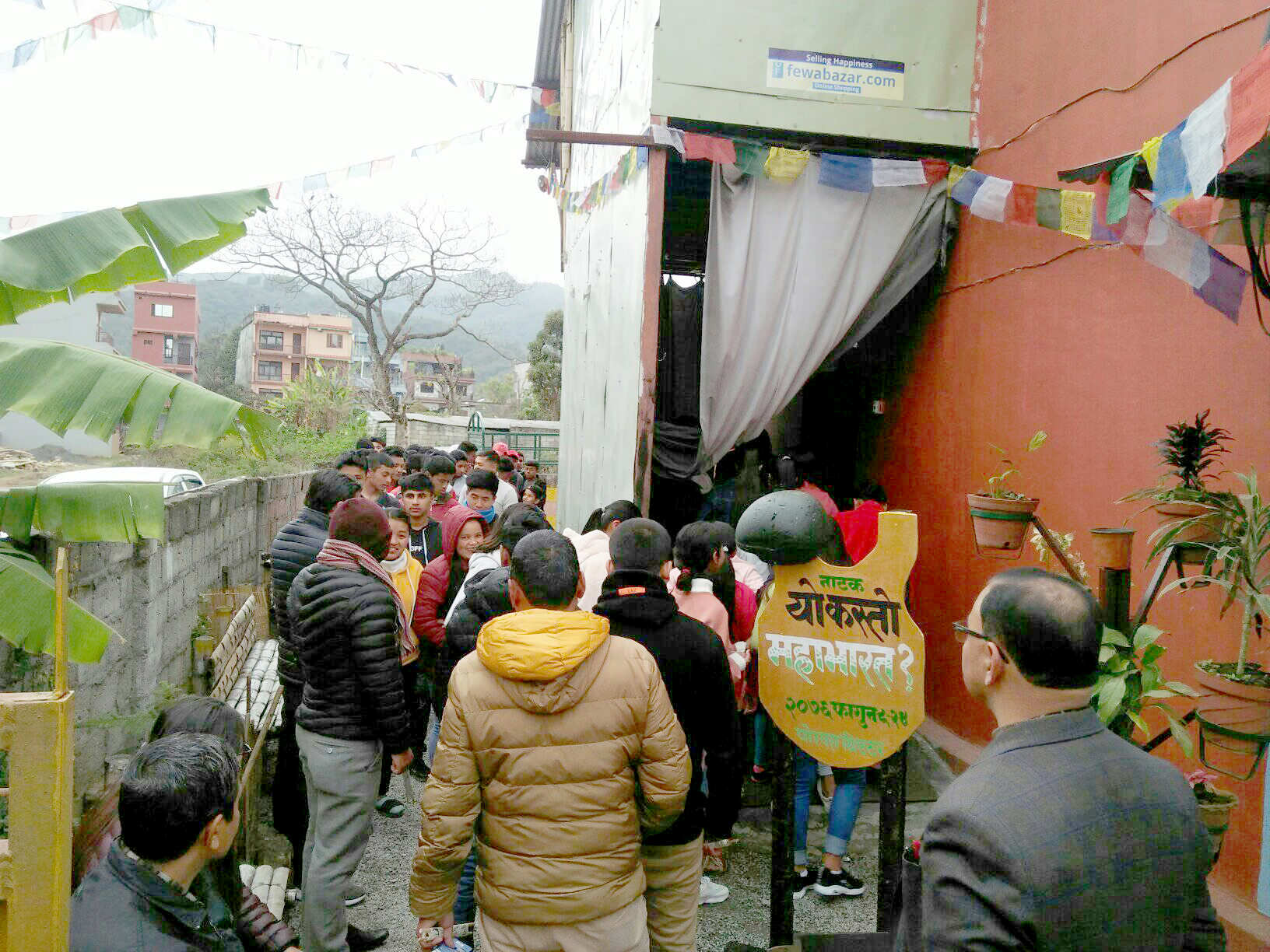 जोसमा बोलियो, गर्नेचाहिँ कसरी ? परिवर्तन कार्की आफैंलाई बोलेको कुराले बाँध्यो । यो २०७३ भदौ दोस्रो हप्ताको कुरा हो । नाटक घर थिएन । नाटक देखाउन कहिले पोखरा उद्योग वाणिज्य संघको हल, पोखरा सभागृह र चोकचोक पुग्नुपथ्र्यो ।