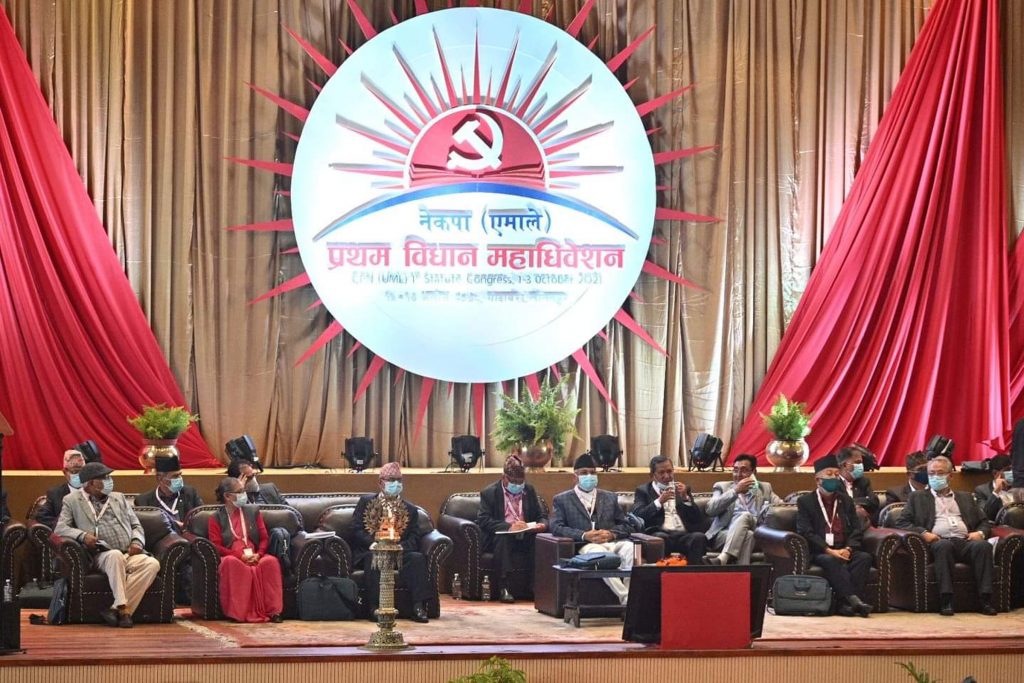 ललितपुरमा सुरु विधान महाधिवेशनमा शुक्रबार उनले पेस गरेको प्रतिवेदनमा यसअघिका एमाले दस्तावेजहरुमा जस्तो कांग्रेसलाई दुश्मन नभनी प्रतिस्पर्धी भनिएको छ ।