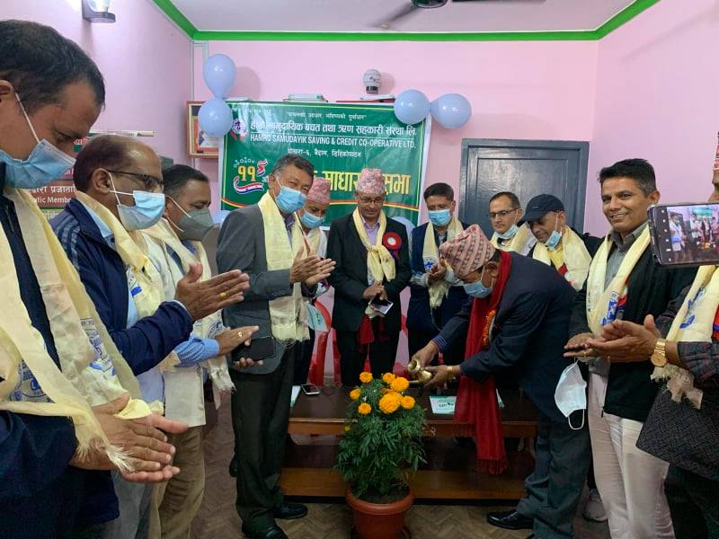 हाम्रो सामुदायिक बचत तथ ऋण सहकारी संस्था लिमिटेडको ११ औं वार्षिक साधारण सभा सम्पन्न भएको छ । सहकारीको आफ्नै सभाहल डिहिकोपाटन ६ बैदाममा शनिबार सभा भएको थियो ।