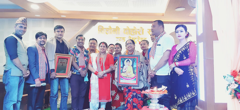 शुभारम्भको अवसरमा दोहोरी साँझले पत्रकार राजाराम पौडेल सम्मान गरेको छ । पत्रकार पौडेललाई गायिका हरिदेवी कोइरालाले सम्मान गरेकी हुन् । पत्रकारिताको माध्यमबाट लोकसंगीतको क्षेत्रमा पु¥याएको योगदानको कदर गर्दै सम्मान गरिएको सञ्चालक दर्नालले बताए । रेडियो अन्नपूर्णमा आवद्ध पत्रकार पौडेल रंग पत्रकारिता क्षेत्रमा क्रियाशिल छन् ।