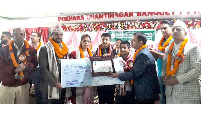 यस्तै, उत्कृष्ट बचतकर्ताका रुपमा सीता अधिकारी, राम बराल र लक्ष्मण बराल सम्मानित भएका छन् । उत्कृष्ट कर्जा सदस्यबाट देवेन्द्र बराल र केशवकुमार बस्नेत सम्मानित भए ।