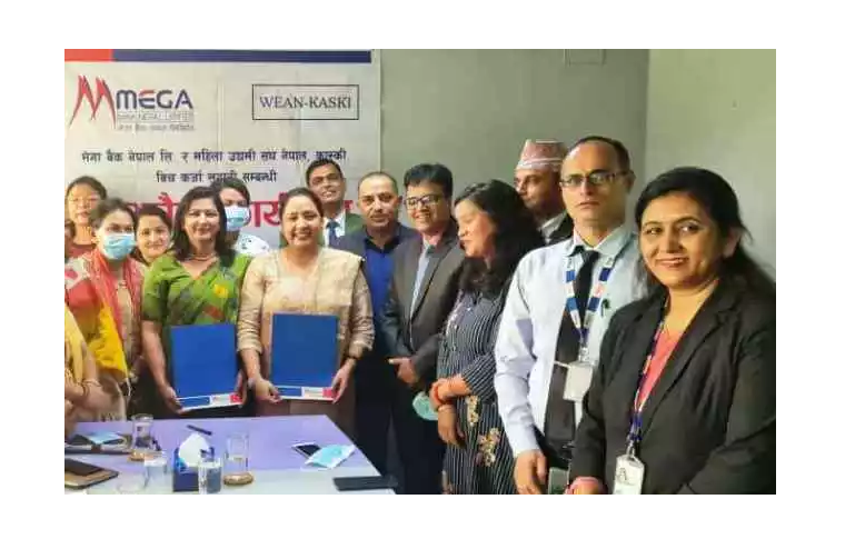 मेगा बैंकले महिला उद्यमीलाई सहुलियतपूर्ण कर्जा दिने भएको छ । विपन्न वर्ग, महिलाद्वारा सञ्चालित लघु, घरेलुका साथै साना तथा मझौला उद्यम व्यवसायहरुलाई प्रवद्र्धन गर्ने महिला उद्यमी संघ कास्कीसँग बैंकले सम्झौता गरेको हो ।
