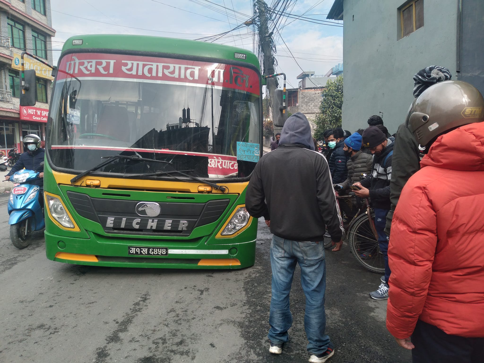 पोखराको नदिपुरमा हिँडिरहेकाे नगर बसको पाङग्रा जमिनमुनि गड्यो
