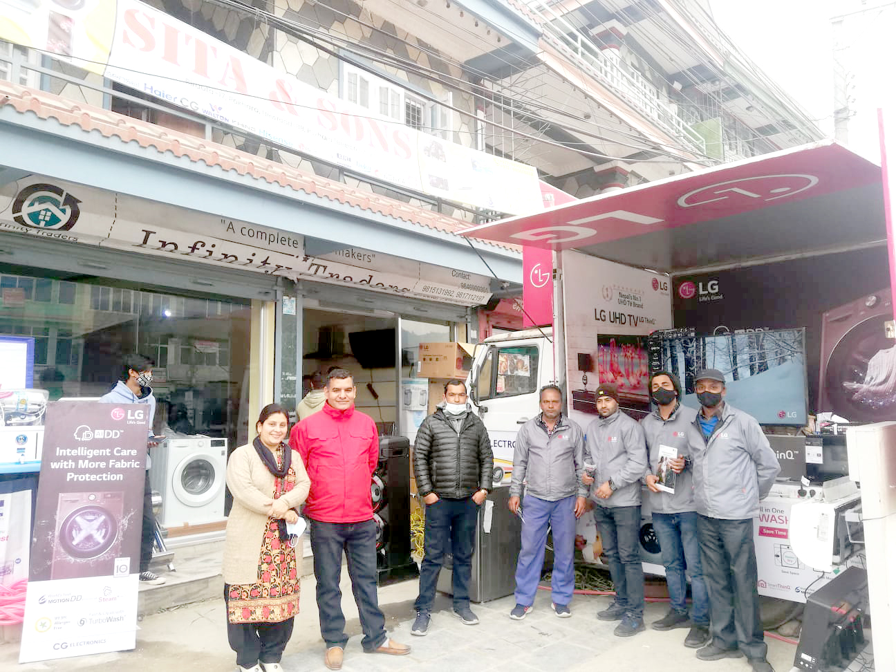 एलजीले विशेष टोली नै खटाएर देश दौडाहा गरिरहेको कम्पनीका प्रबन्धक कुमार घिमिरेले बताए । ‘कम्पनीले पछिल्लो समय निस्केको लेटेस्ट वासिङ मेसिनको प्रमोट गरिरहेको छ । यसले छोटो समयमै कपडा धुन्छ । १ पटकमा ९ केजीसम्म कपडा धुन र सुकाउने एकसाथ गर्छ,’ घिमिरेले भने ।