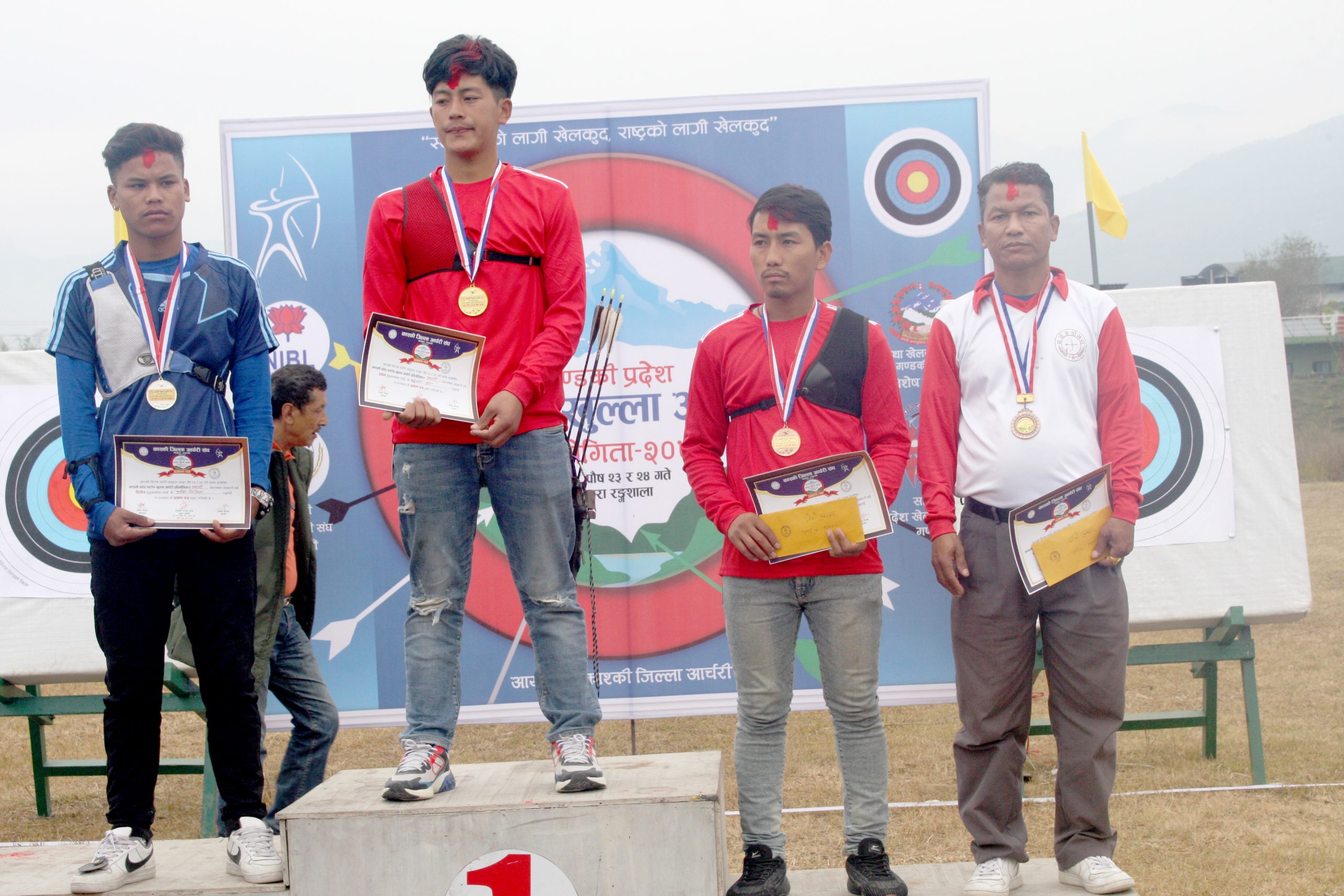 कास्की जिल्ला आर्चरी संघको आयोजना तथा नेपाल इन्भेस्टमेन्ट बैंकको मुख्य प्रायोजनमा आयोजित स्टान्डर्ड–३० मिटर प्रतियोगिताको पोखरा रंगशालास्थित आर्चरी मैदानमा शनिबार भएको फाइनलमा तेस्रो स्थानमा भने म्याग्दीका राजु खोर्जा पुले कास्कीका पूर्ण गौचनलाई ७–१ को सेट प्वाइन्टले पराजित गर्दै नगद १५ हजार पुरस्कार थाप्दा गौचन भने चौथो स्थानमा रहँदै नगद १० हजार रुपैयाँ प्राप्त गरे ।