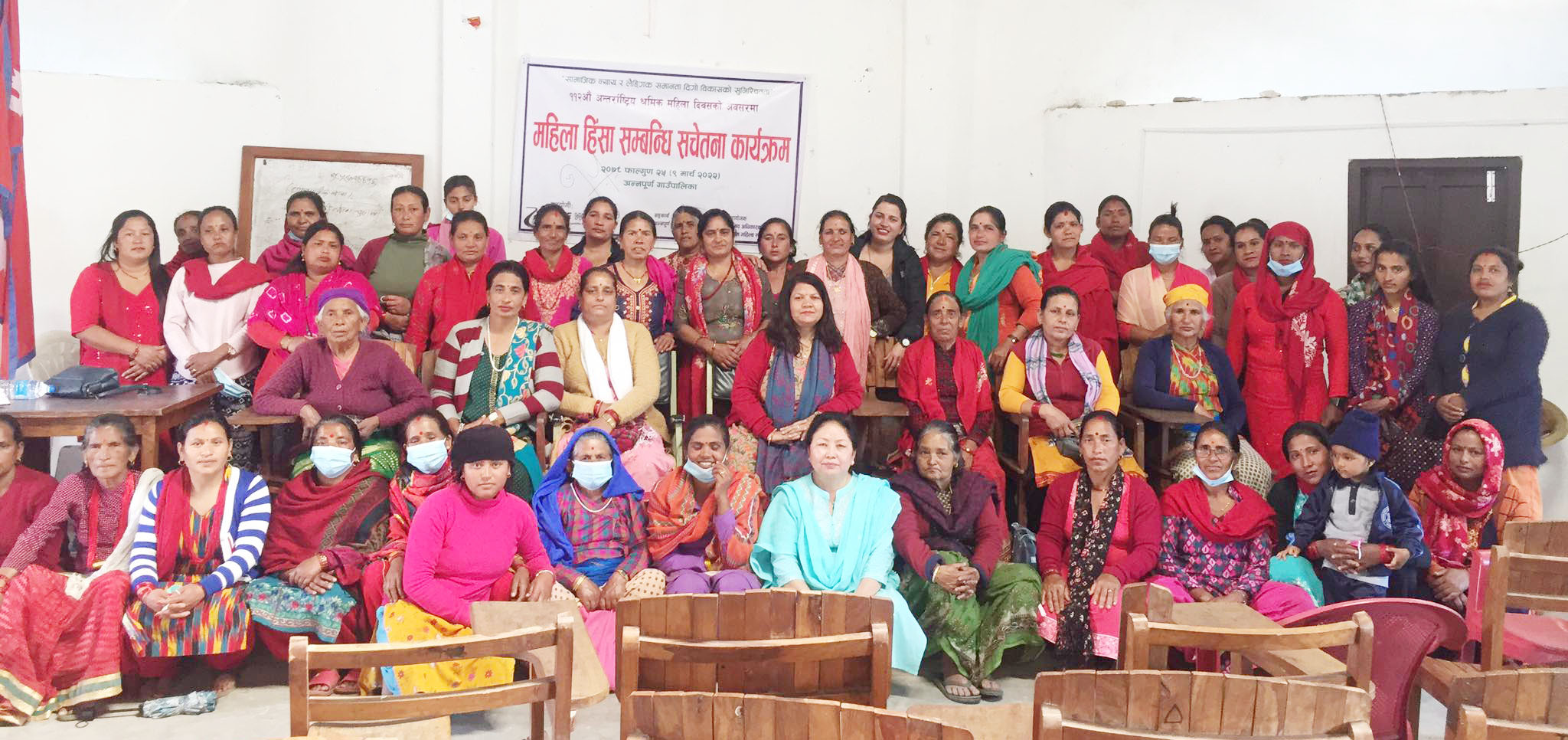 मानव अधिकारका लागि महिला एकल महिला समूह कास्कीले बुधबार महिला हिंसाबारे सचेतना आयोजना ग¥यो । कास्कीको अन्नपूर्ण गाउँपालिकाको सहकार्यमा भएको कार्यक्रममा महिलाहरु सक्षम बन्दै आफ्नो हक माग्नुपर्नेमा जोड दिइयो ।