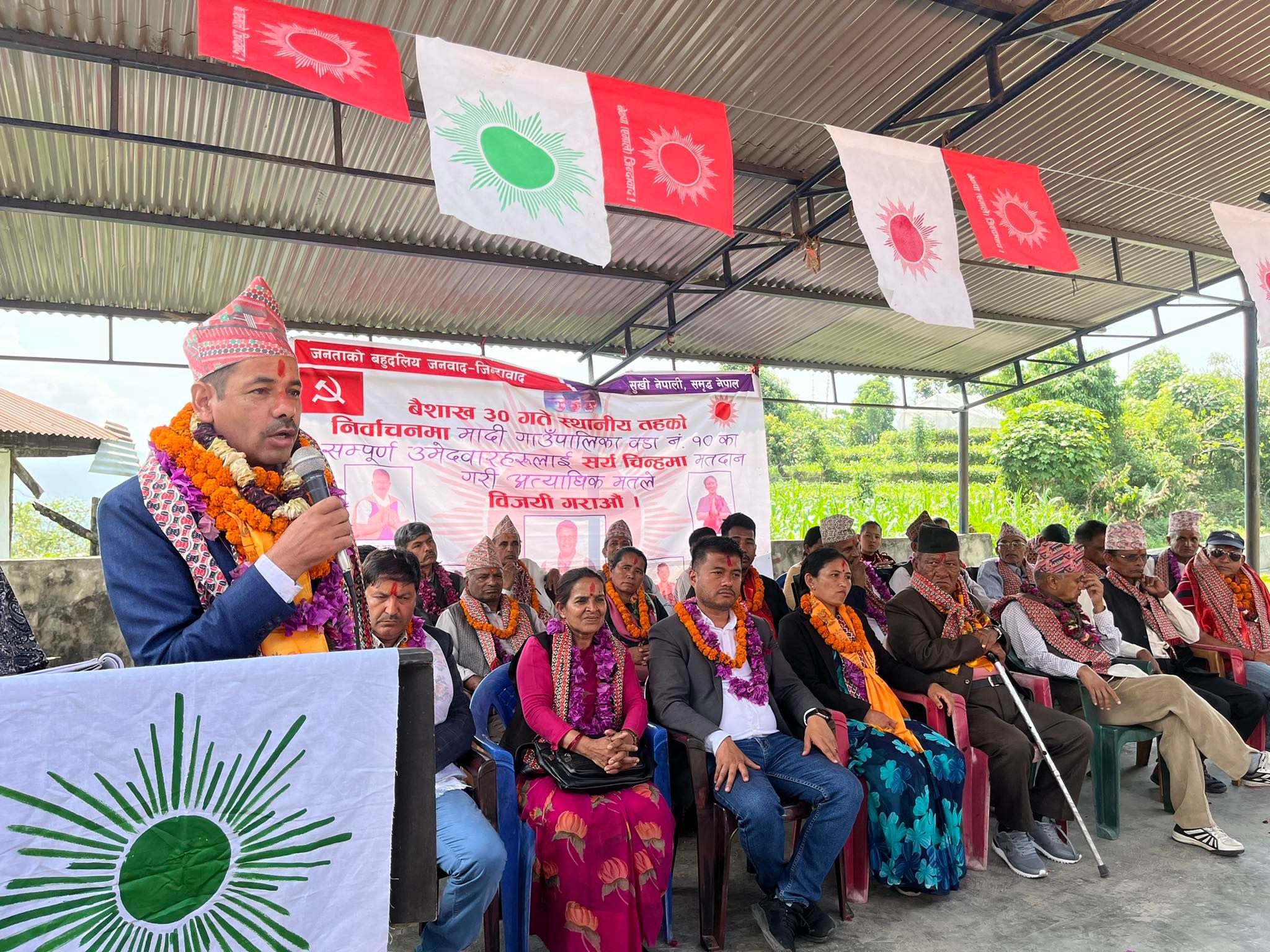 नवप्रवेशीलाई एमाले स्थायी कमिटी सदस्य एवं संगठन विभाग प्रमुख खगराज अधिकारी, मादी गाउँपालिका अध्यक्ष उम्मेद्वार शिवबहादुर गुरुङ (महेन्द्र), उपाध्यक्ष उम्मेद्वार कल्पना गुरुङलगायत पालिकाका एमाले नेताले स्वागत गरेका थिए ।