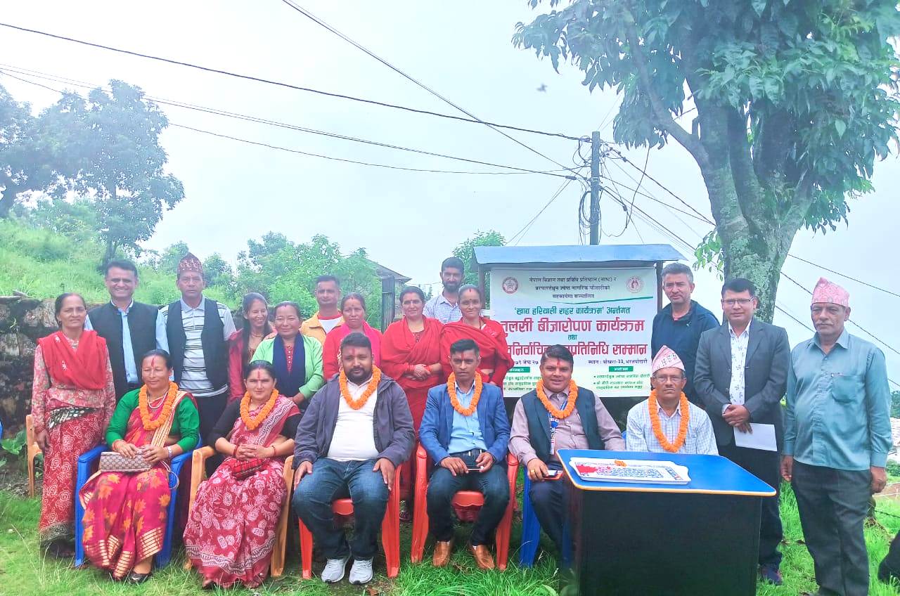 ‘खाद्य हरियाली सहर कार्यक्रम’ अन्तर्गतबरपाण्डेथुम ज्येष्ठ नागरिक चौतारीले तुलसी बीज रोपण एवं पोखरा महानगरपालिका वोडा नं. ३३ का वडाध्यक्ष रामचन्द्र अधिकरी,सदस्यहरु प्रकाश कार्की, विनोद भण्डारी, दुर्गा केसी र लीला नेपालीलाई सम्मान गरेको छ ।