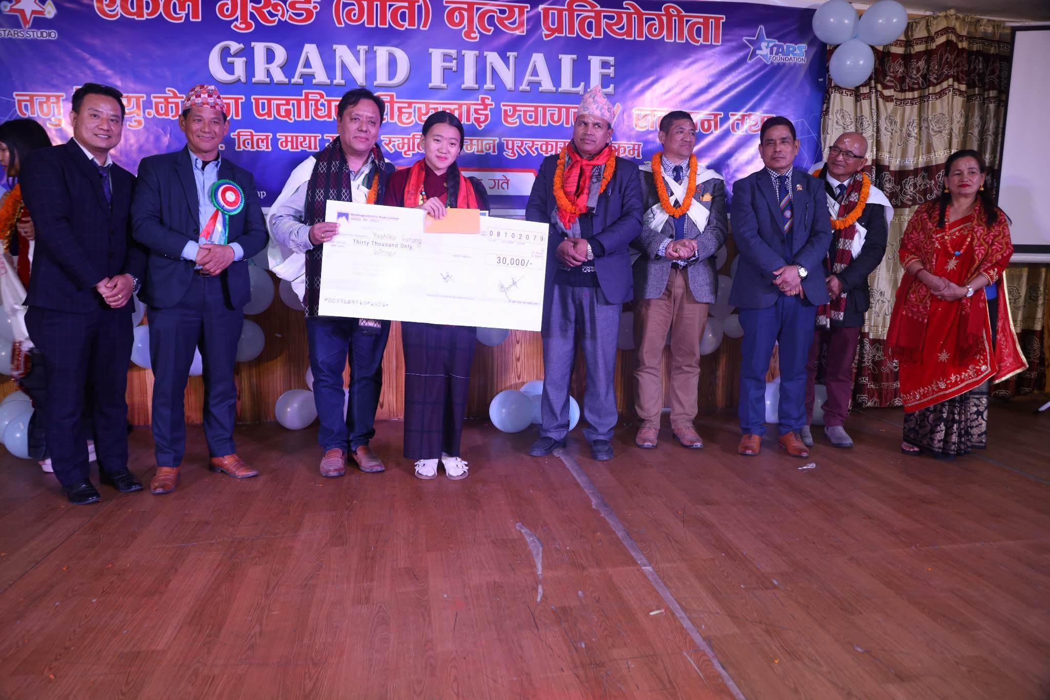 पोखरा । एकल गुरुङ (गीत) नृत्य प्रतियोगितामा रुपन्देहीकी एसिका गुरुङ प्रथम भएकी छन् । आइतबार पोखरामा आयोजित फाइलनमा एसिका प्रथम भएकी हुन् । स्टार्स फाउन्डशन नेपाल र स्टार्स स्टुडियो प्रालि पोखराद्वारा आयोजित प्रतियोगितामा पाल्पाका सन्तोष मगर द्वितीय र कास्कीकी श्रव्या गुरुङ तृतीय भएका छन् । प्रतियोगितामा क्रमश एसिकाले ३०, सन्तोषले २० र श्रव्याले १० हजार नगद प्राप्त गरेका छन् । उनीहरुले नगदसहित प्रमाणपत्र तथा ट्रफी पाएका हुन् ।