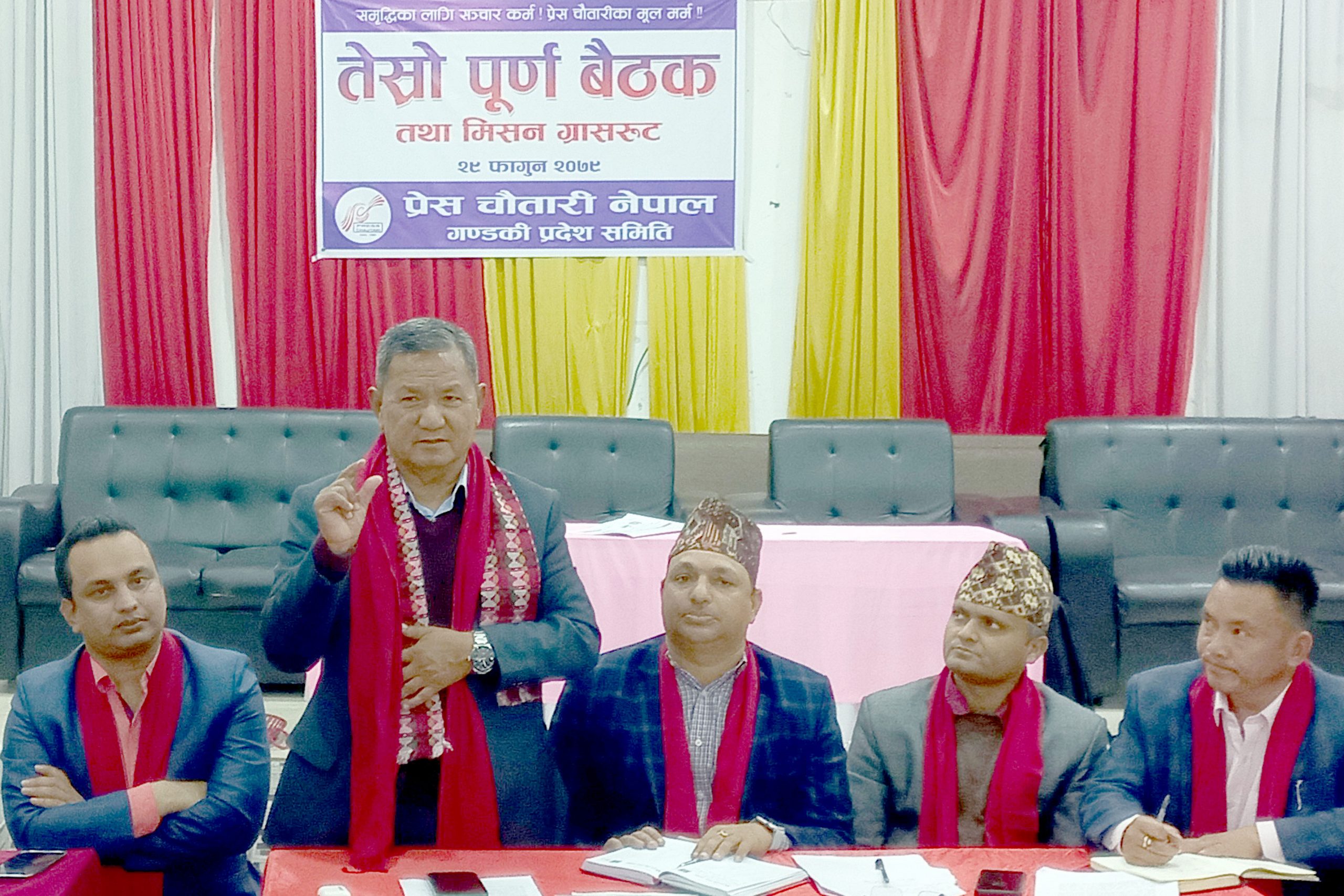 नेकपा (एमाले)को मिसन ग्रास रुट अभियान २०७९ अन्तर्गत प्रेस चौतारी नेपाल गण्डकी प्रदेश समितिको तेस्रो पूर्ण बैठक भएको छ । बैठकले कमिटी विस्तारका साथै पदाधिकारी सहितको सचिवालय गठन गरेको अध्यक्ष ईन्द्रप्रसाद पौडेलले जानकारी दिए ।