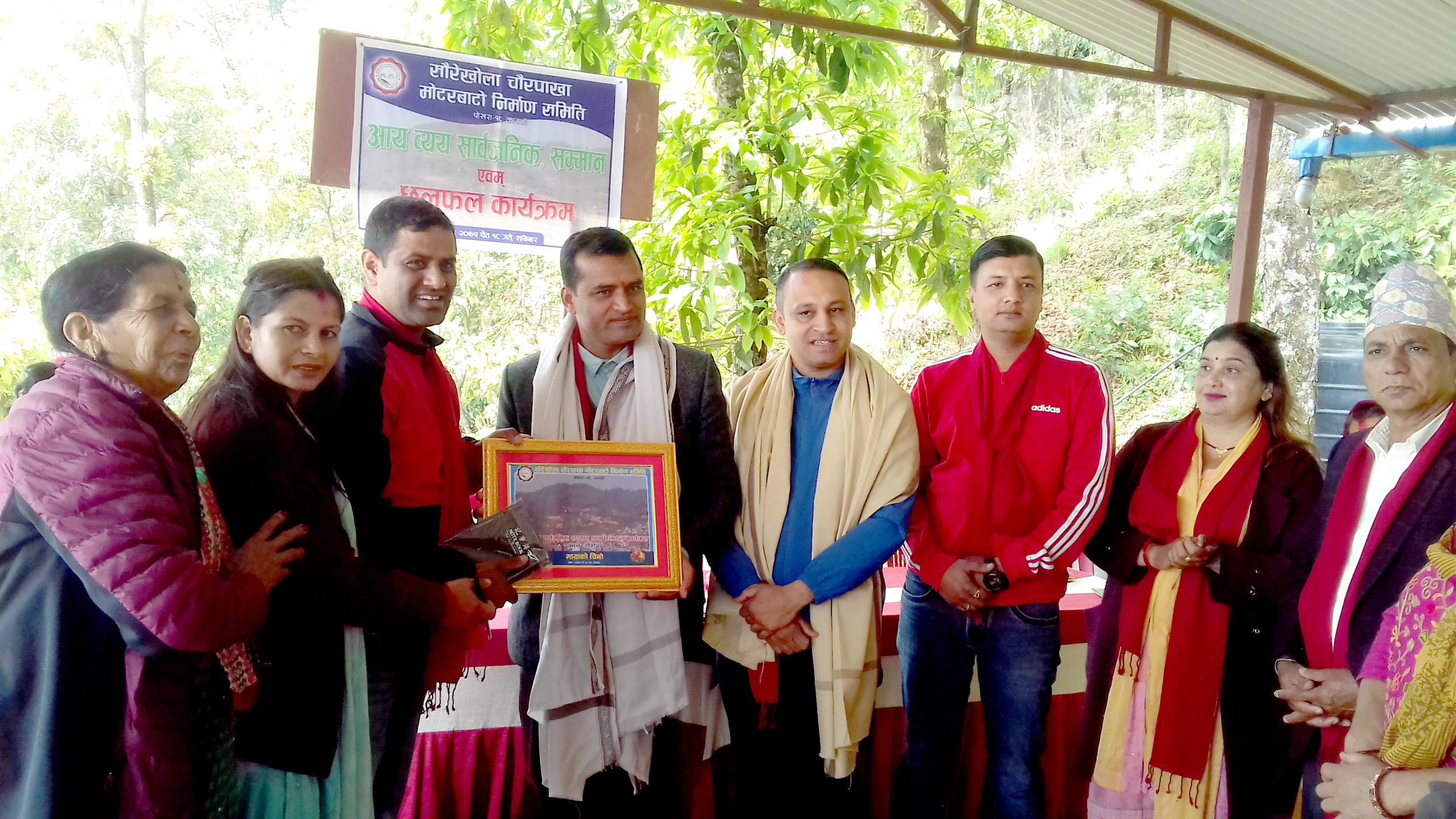 सराङकोट स्थित सौरेखोला चौरपाखा मोटरबाटो निर्माण समितिले वडाध्यक्षद्वय तिमिल्सिना र पराजुलीलाई बाटो निर्माणमा महत्वपूर्ण सहयोग पुर्याएको भन्दै दोसल्ला तथा सम्मानपत्रसहित सममान गरेको हो ।