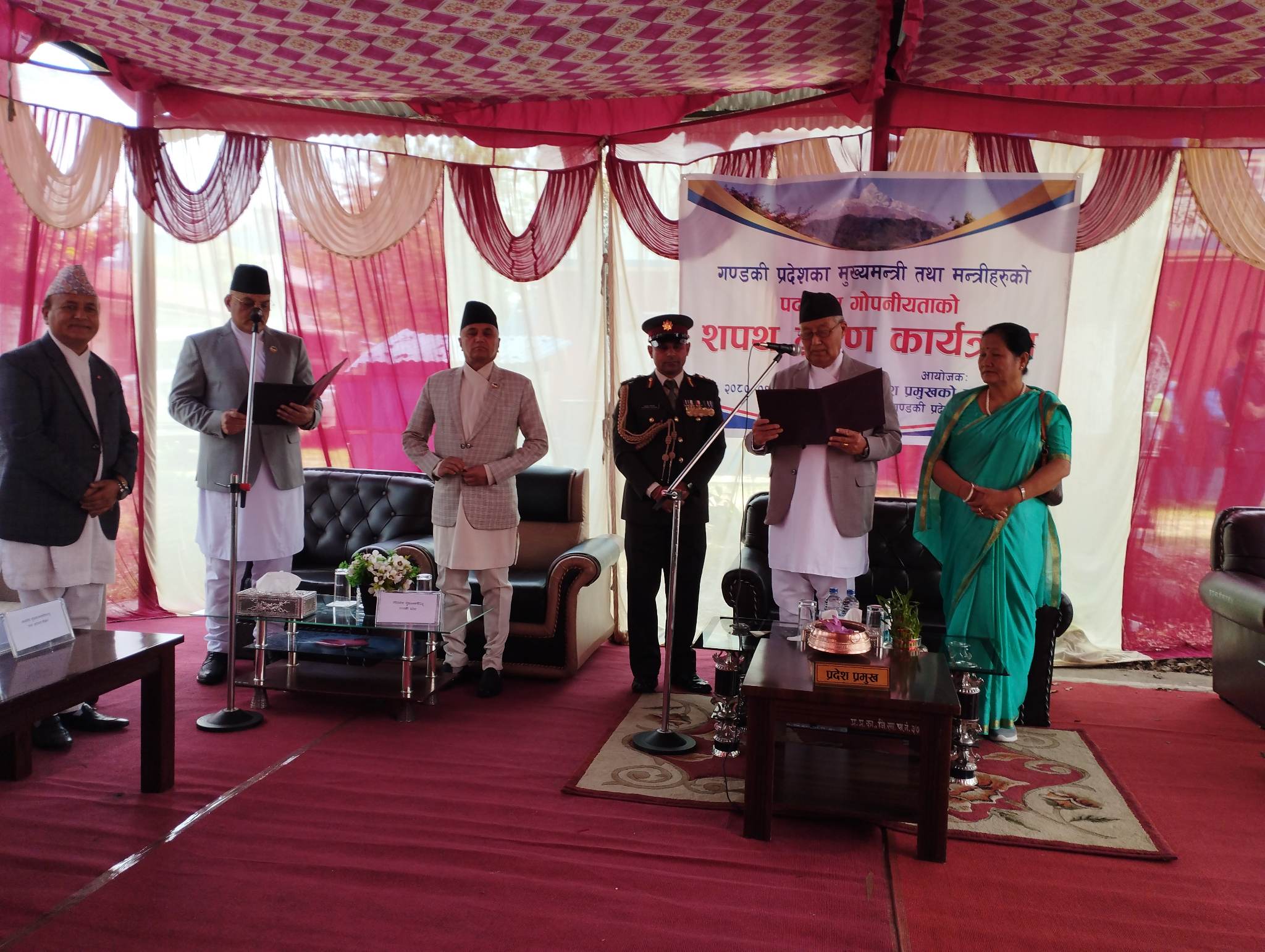सपथ समारोहमा निवर्तमान मुख्यमन्त्री खगराज अधिकारी पनि सहभागी थिए ।