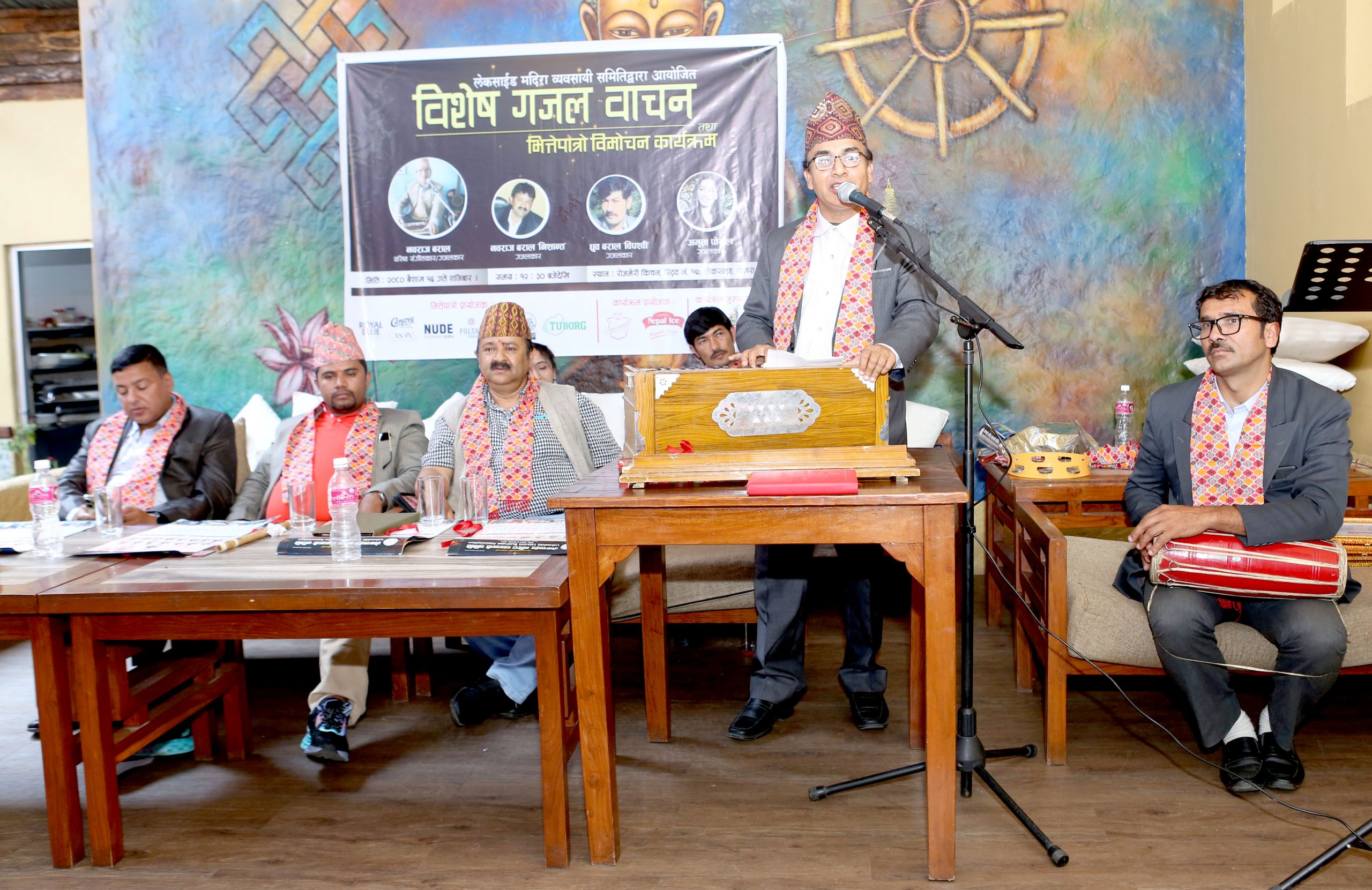 कार्यक्रममा नवराज बराल, नवराज बराल (निशान्त), धुव्र बराल (विपश्वी), गजलकार अमृता पोखरेल लगायतले गलज प्रस्तुत गरेका थिए । लेकसाइड मदिरा व्यवसायी समिति अध्यक्ष रोशन देवकोटाको अध्यक्षतामा भएको कार्यक्रममा निवर्तमान अध्यक्ष दिनदयाल पाण्डे र सहसचिव बालहरि बरालले पनि बोलेका थिए ।
