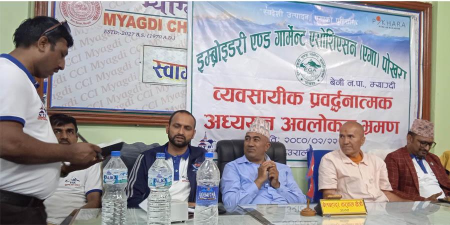 इम्ब्रोइडरी एन्ड गार्मेन्ट एसोसिएसन (एगा) पोखराले म्याग्दीको बेनीमा आयोजना गरेको अन्तरक्रियामा अध्यक्ष क्षेत्रीले उद्योग व्यवसायको प्रवद्र्धनमा पोखराले म्याग्दीलाई सघाउनुपर्ने खाँचो औंल्याए । उनले म्याग्दीमा उत्पादित सामाग्रीको ब्रान्डिङका लागि सहयोग गरिदिन पोखरेली व्यवसायीसँग आग्रह गरे ।