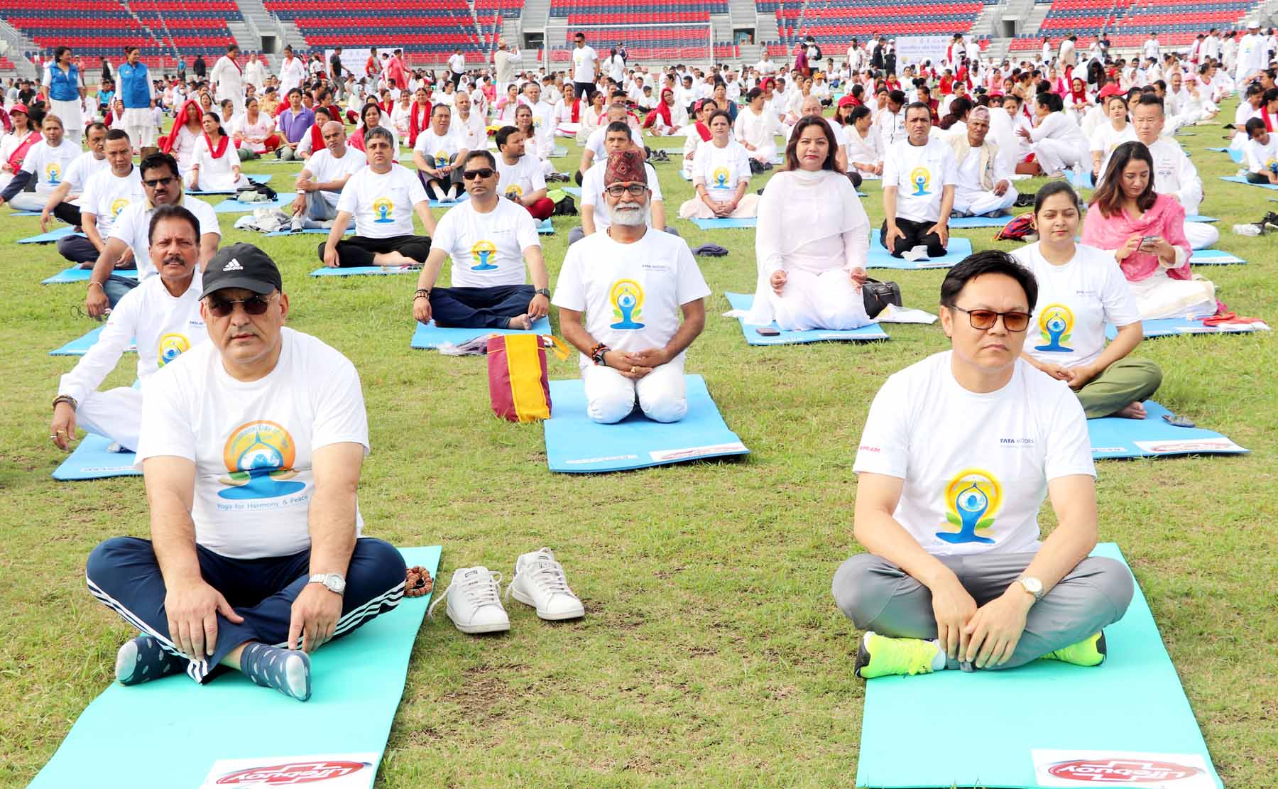 रंगशालामा गण्डकी प्रदेशका मुख्यमन्त्री सुरेन्द्रराज पाण्डे, पर्यटनमन्त्री सुदन किँराती, नेपालका लागि भारतीय राजदूत नवीन श्रीवास्तव, पोखरा महानगरपालिकाका मेयर धनराज आचार्य लगायतले योगाभ्यास गरे । कार्यक्रममा युवा, युवती, वृद्धवृद्धा, विद्यार्थी लगायतले योग अभ्यास गरेका थिए ।