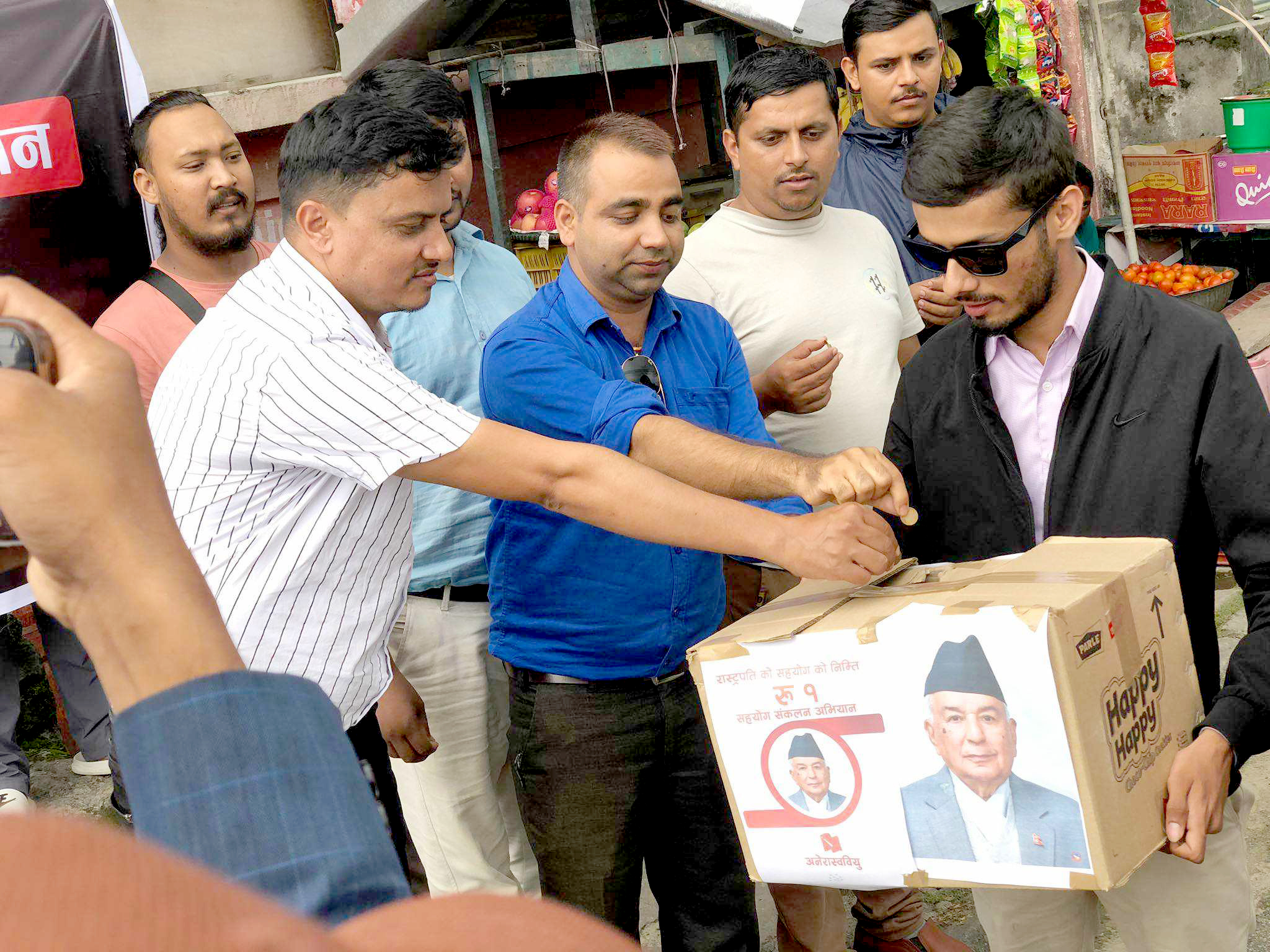 अनेरास्ववियु र युवा संघले राष्ट्रपति रामचन्द्र पौडेलको नाममा ‘एक रुपैयाँ दान अभियान’ सुरु गरेका छन् । दुई संगठनका प्रदेश कमिटीले बुधबार प्रदेशसभा बाहिर बुधबार चन्दा संकलन गरेका छन् । गण्डकीका निवर्तमान मुख्यमन्त्री एवं नेकपा एमाले नेता खगराज अधिकारीसहित सांसदहरूले चन्दा दिएका थिए ।