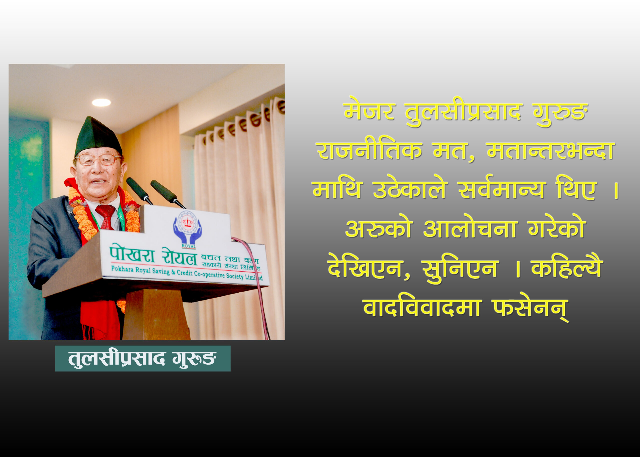 मेजर तुलसीप्रसाद गुरुङ राजनीतिक मत, मतान्तरभन्दा माथि उठेकाले सर्वमान्य थिए । अरुको आलोचना गरेको देखिएन, सुनिएन । कहिल्यै वादविवादमा फसेनन्