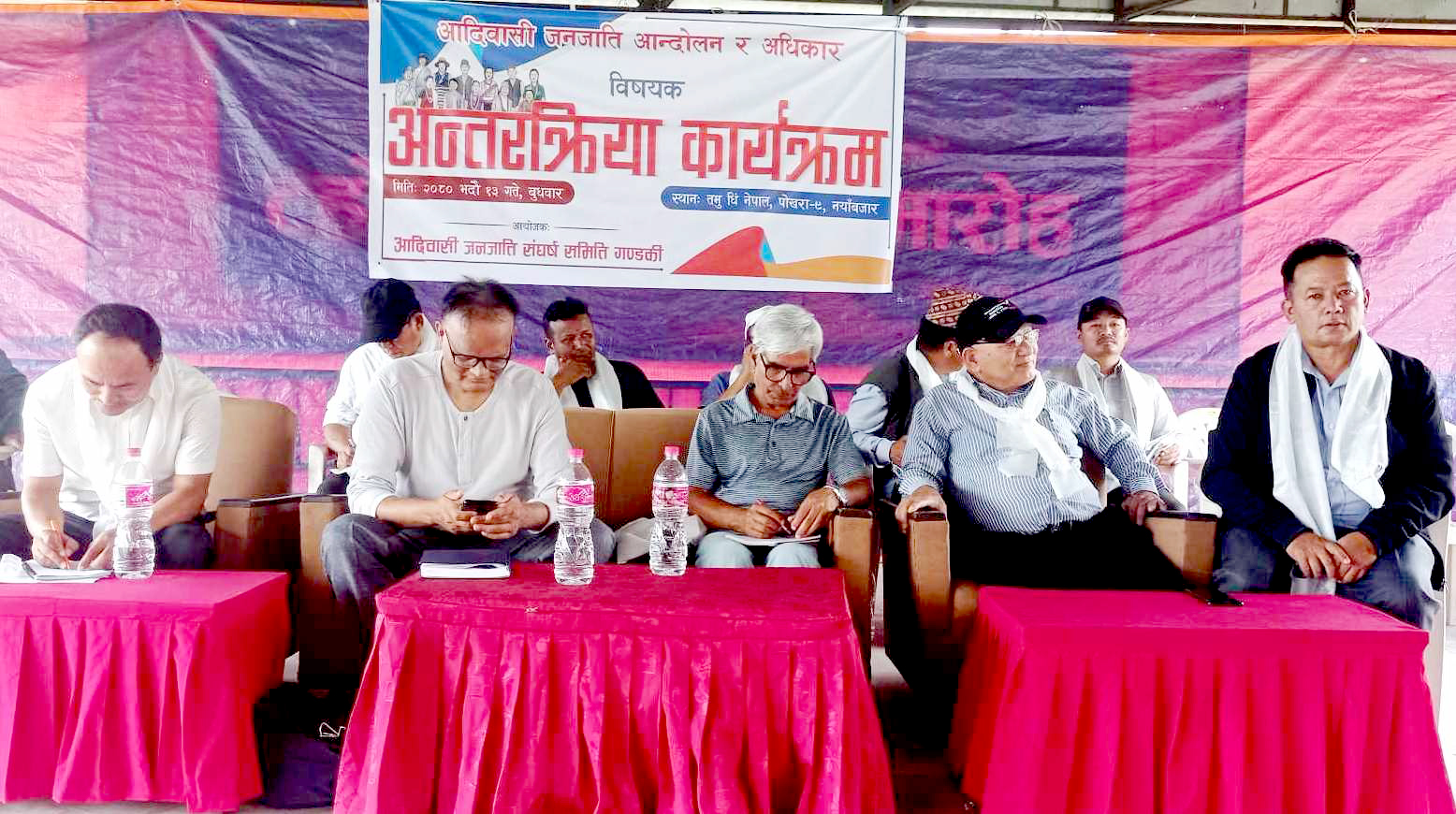 कार्यक्रममा आदिवासी जनजाति संघर्ष समिति गण्डकी संयोजक धर्मबहादुर गुरुङ, सहसंयोजक हुमबहादुर गुरुङ र सचिव तोरण गुरुङले आदिवासी जनजातिका सवालमा बोलेका थिए ।