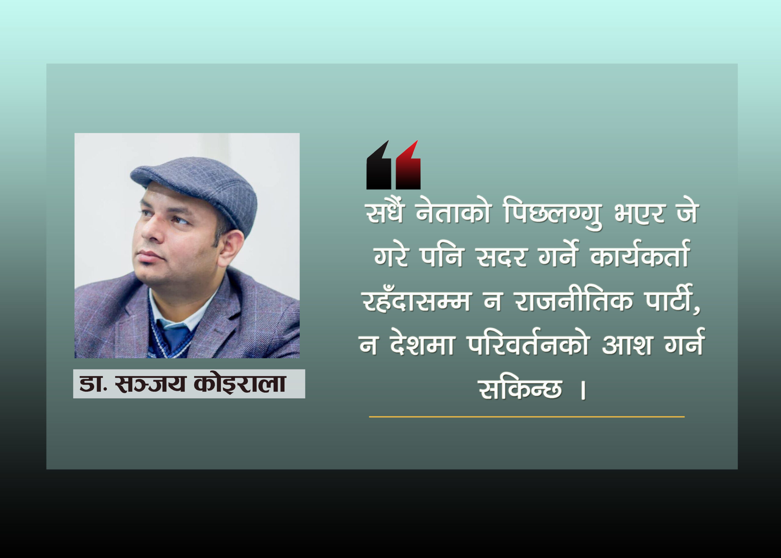 सधैं नेताको पिछलग्गु भएर जे गरे पनि सदर गर्ने कार्यकर्ता रहँदासम्म न राजनीतिक पार्टी, न देशमा परिवर्तनको आश गर्न सकिन्छ ।