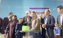 विद्यार्थीलाई न्यानो कपडा र शैक्षिक सामग्री