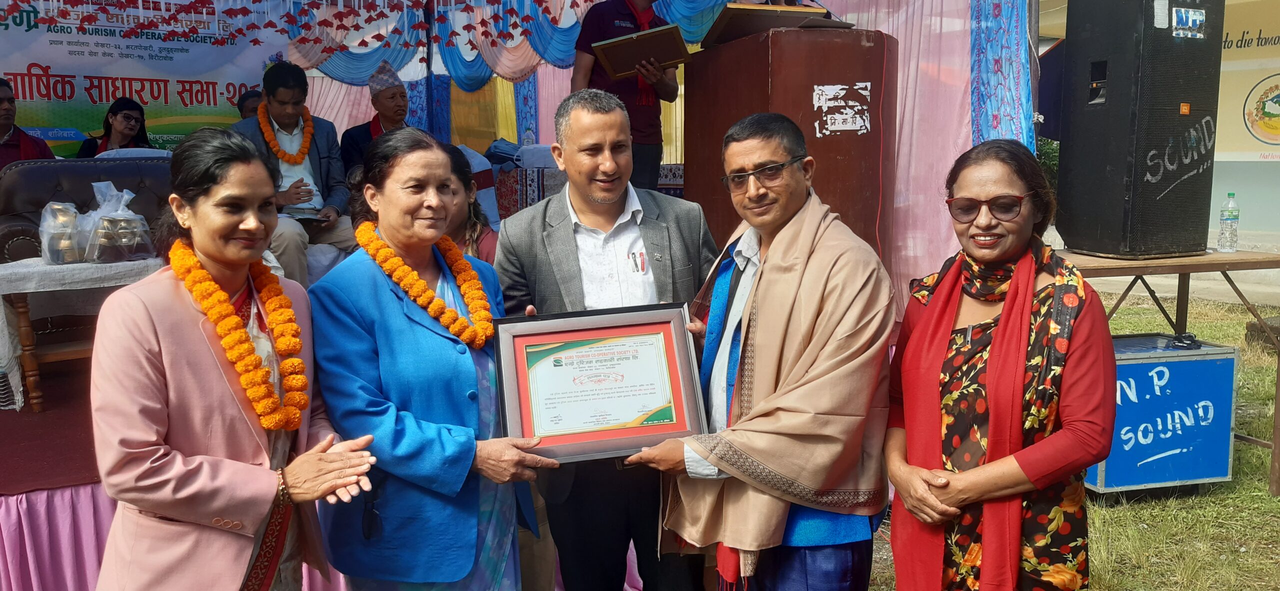 एग्रो टुरिजम सहकारी संस्था लिमिटेडको दोस्रो वार्षिक साधारणसभा एक समारोहका शनिबार भएको छ । सभामा गण्डकी प्रदेशकी सामाजिक विकास तथा स्वास्थ्य मन्त्री सुुशीला सिम्खडाले कृषि र पर्यटनलाई जोड्न सकेमा त्यसले आम सर्वसाधारणलाई उत्पादनसँग जोड्ने जनाइन् ।
