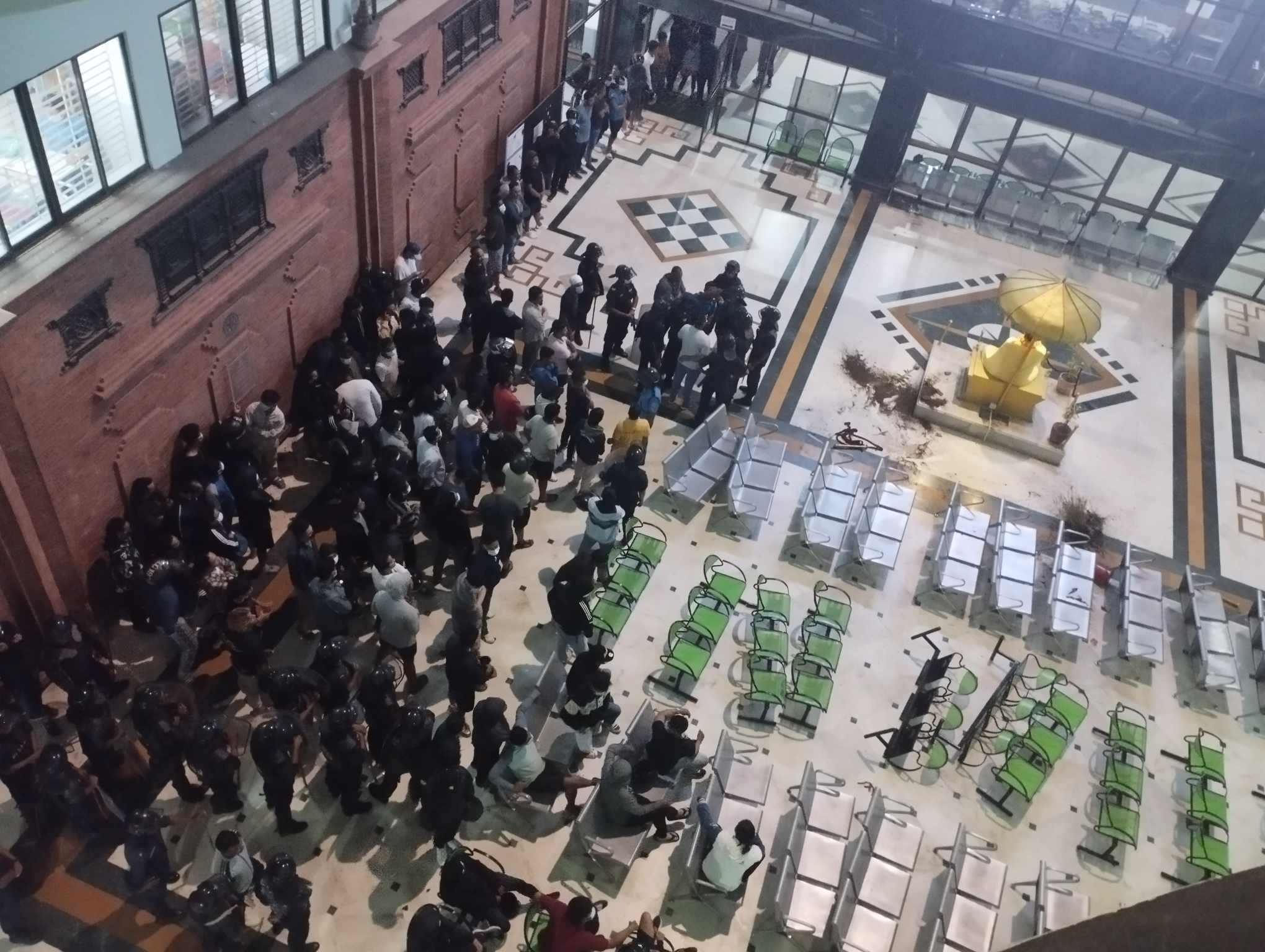 बिरामीको मृत्युपछि मणिपाल अस्पतालमा सोमबार उत्पन्न तनावको दृश्य । तस्बिर ः समाधान