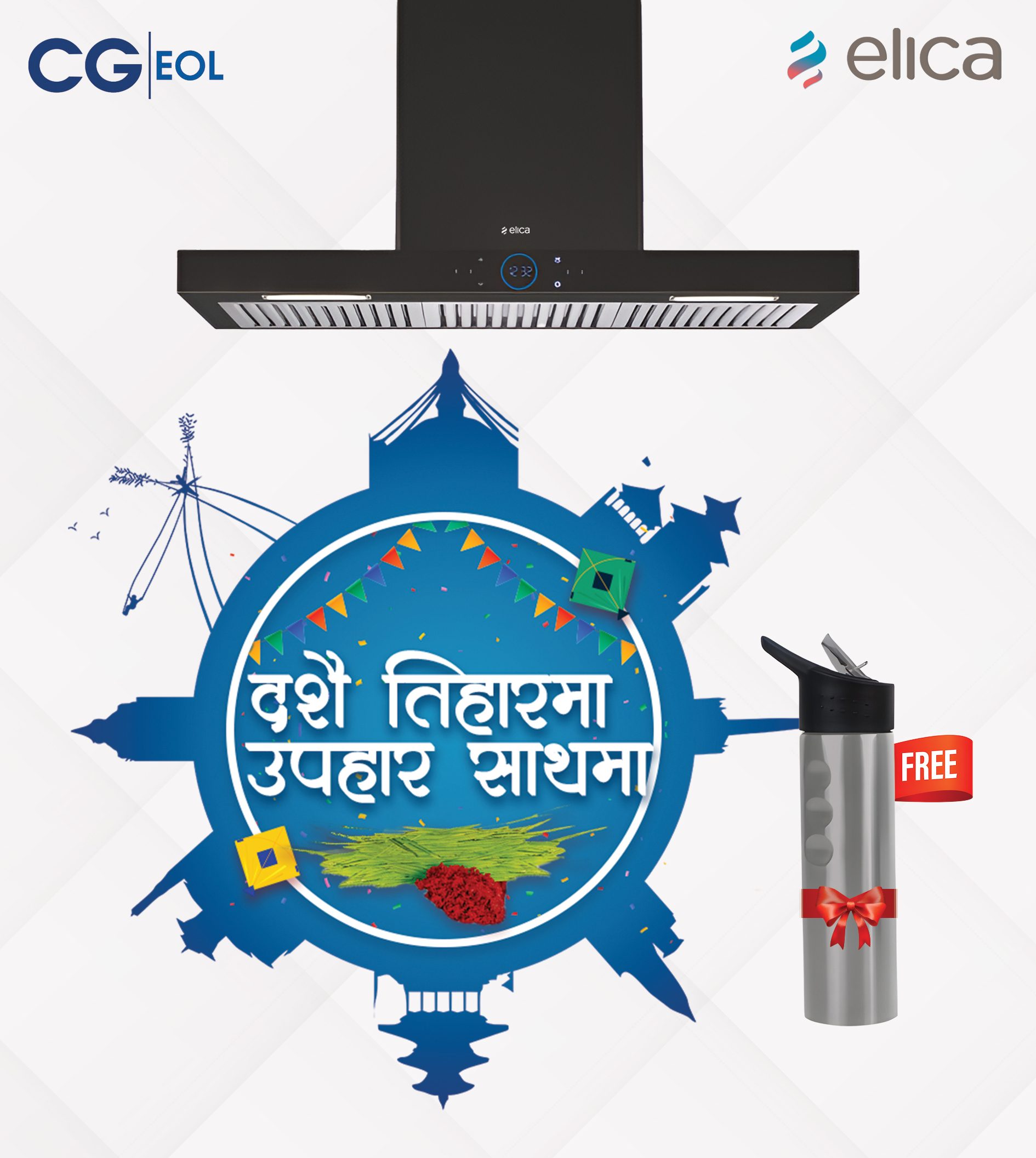 नेपालमा भान्सा उपकरणहरूका बजारमा ग्राहकवर्गले असाध्यै रुचाएको एलिका ब्रान्डले नेपालको सबैभन्दा ठूलो उत्सव दसैं र तिहारलाई लक्ष्य गर्दै ‘दसैं तिहारमा, उपहार साथमा’ भन्ने नारासहित जारी गरेको यो अफर अन्तर्गत एलिकाको कुनै पनि सामानको (चिम्नी, कुक टप, हब, कुकिङ रेञ्ज, बिल्ट–इन ओभन, बिल्ट–इन मिक्रो वेभ ओभन) खरिदमा सिजी ब्रान्डको भ्याकुम फ्लास्क उपहार स्वरूप प्रदान गरिएको छ । यो ग्राहक योजना २८ भदौदेखि नेपालभरि सीमित अवधिका लागि लागु गरिएको छ ।