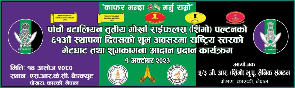 कान्छी पल्टनको ६१ औं स्थापना दिवस तथा भेटघाट र शुभकामना आदनप्रदान कार्यक्रम भएको छ । कमान्डिङ अफिसर्स कर्नेल आरए खानको प्रमुख आथित्यता र आयोजक ५/ ३ जिआर (शिंगो) भूपू सैनिक संगठन, पोखरा कास्कीका अध्यक्ष सुबेदार अनेरी क्याप्टेन (सुमेअक्या) टंकबहादुर घलेको सभापतित्वमा कार्यक्रम भएको हो ।