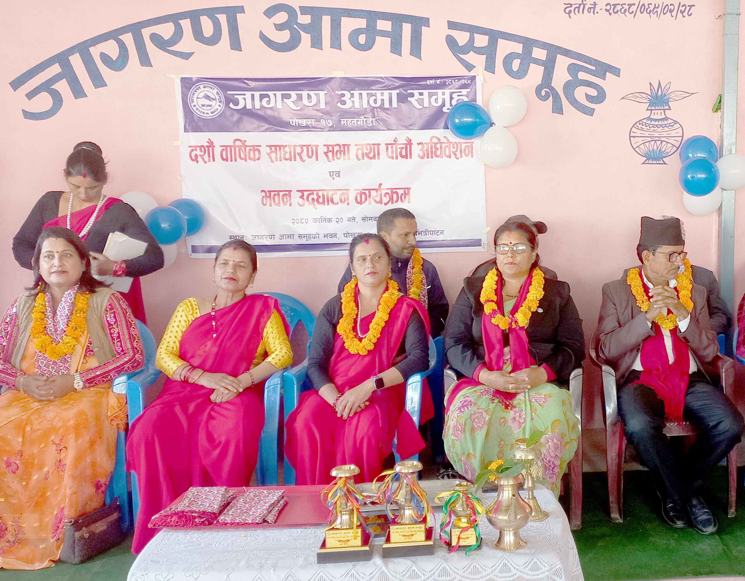 पोखरा १७ का वडाअध्यक्ष राधिका शाही योगीले समूहको दशौं वार्षिक साधारण सभा एवम् पाँचौ अधिवेशनका आवसरमा सोमबार नवनिर्मित भवनको उद्घाटन गर्दै हक अधिकार सुनिश्चितताका लागि आमा समूह संगठित भएर अघि बढ्नु पर्नेमा जोड दिइन् ।