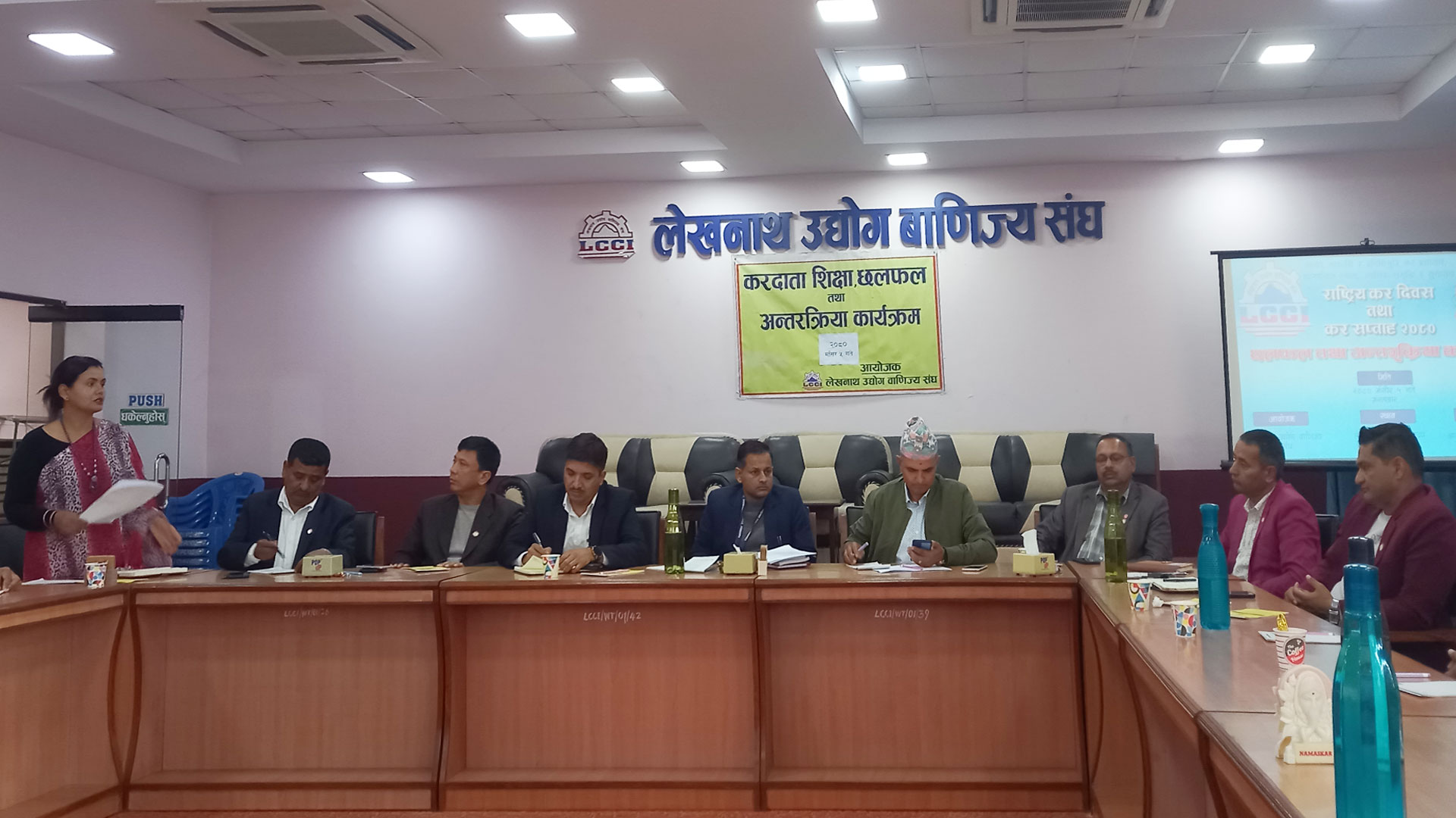 राष्ट्रिय कर दिवस तथा कर सप्ताह २०८० को अवसरमा लेखनाथ उद्योग वाणिज्य संघसँगको सहकार्यमा मंगलबार लेखनाथका व्यवसायीलाई करदाता शिक्षासहित अन्र्तक्रिया भएको छ । कार्यक्रममा आन्तरिक राजस्व कार्यालय पोखराका प्रमुख कर अधिकृत शिव शर्माले चालु आर्थिक वर्षको चौमासिकमा लक्ष्यभन्दा बढी कर संकलन गर्न सफल भएको बताए ।