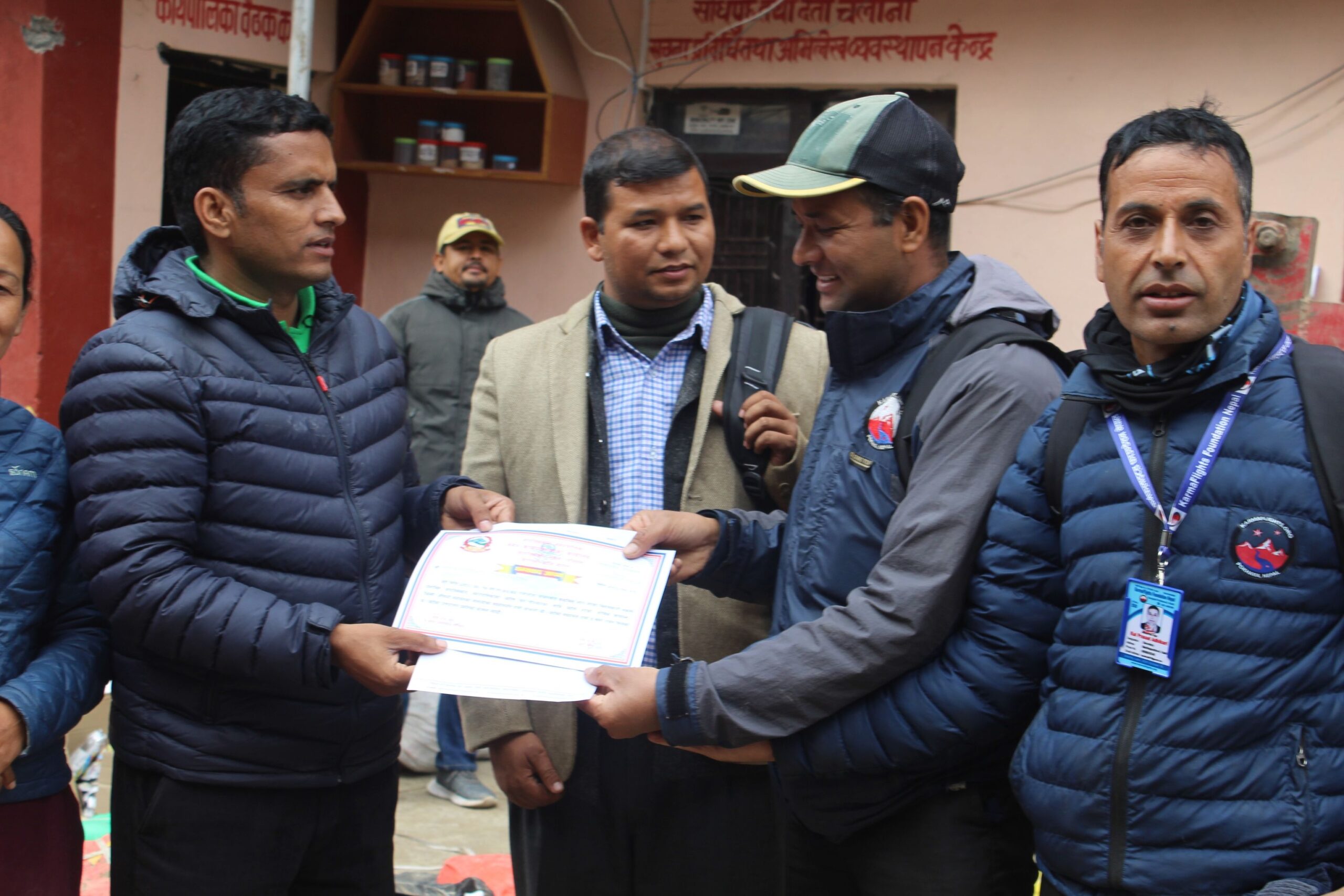 त्यसै क्रममा पोखरा –९ स्थित चिप्लेढुंगा मिनी मार्केट एस्सोसियसनमा आबद्ध मनकारी ब्यबसायीहरुले भुकम्प प्रभावितहरुको लागि करिव ६ लाख बराबरको ९ बोरा न्यानो कपडाहरु संस्था मार्फत हस्तान्तरण गरेका छन् ।