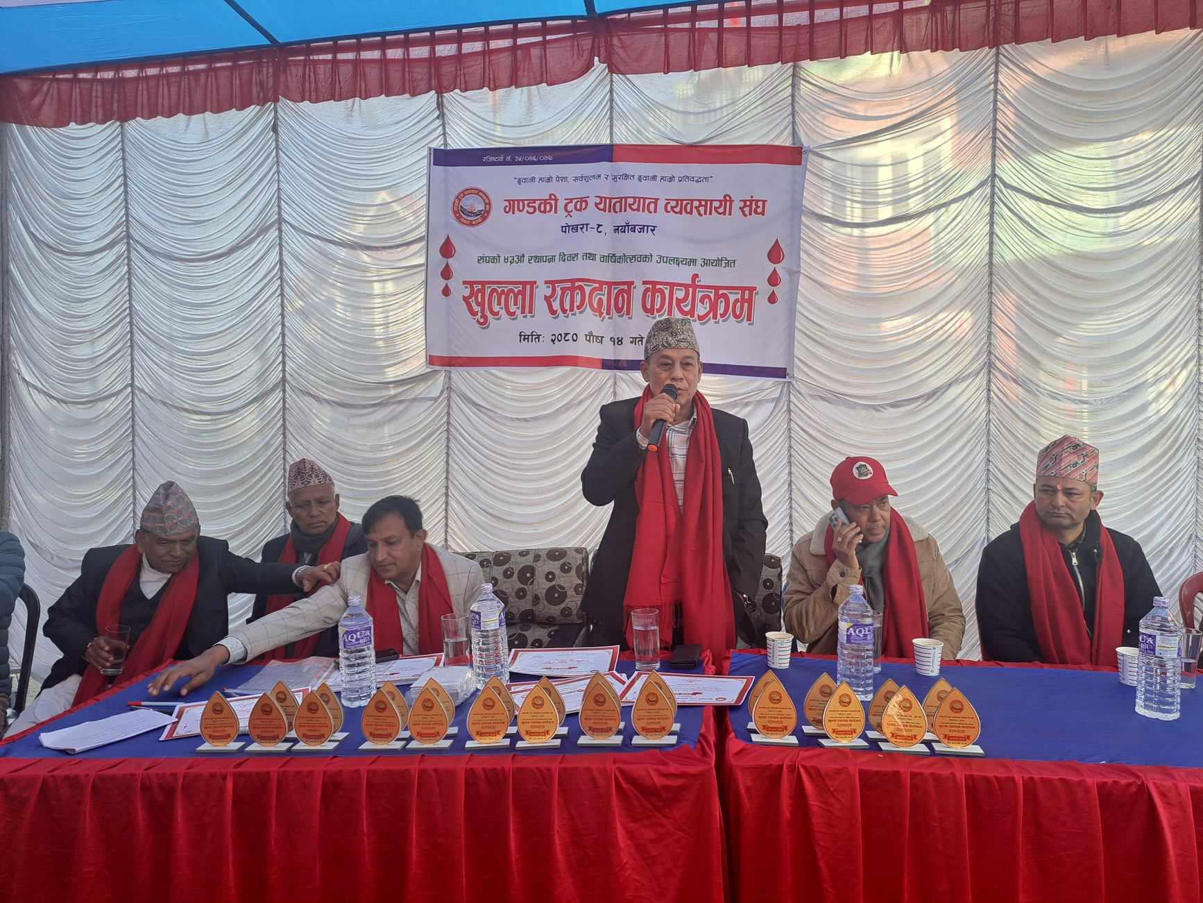 संघले शनिबार बिहानै कार्यालयको भवन नजिकै खुला रक्तदान कार्यक्रम गरेको हो । सूचना अधिकारी थापाले २५ युनिट रगत संकलन भएको जानकारी दिए । रक्तदान कार्यक्रममा मनोजजंग रानाले पहिलो रक्तदान गरेका हुन् । उनको यो ११ पटकको रक्तदान भएको सुनाए । कार्यक्रममा प्रमुख अतिथि प्रदेश सभा सदस्य थापाले रक्तदानबाट कसैको जीवनदान हुने भएकाले यस्तो कार्य पुन्य भएको बताए । ‘यस्तो पुन्यको कार्यक्रममा जोडिनुभएको छ । यहाँहरु सम्पूर्णलाई हार्दिक धन्यवाद । आगामी दिनमा यस्ता कार्यक्रममा जोडिँदै जानुहोला मेरो शुभेक्षा छ,’ थापाले भने ।