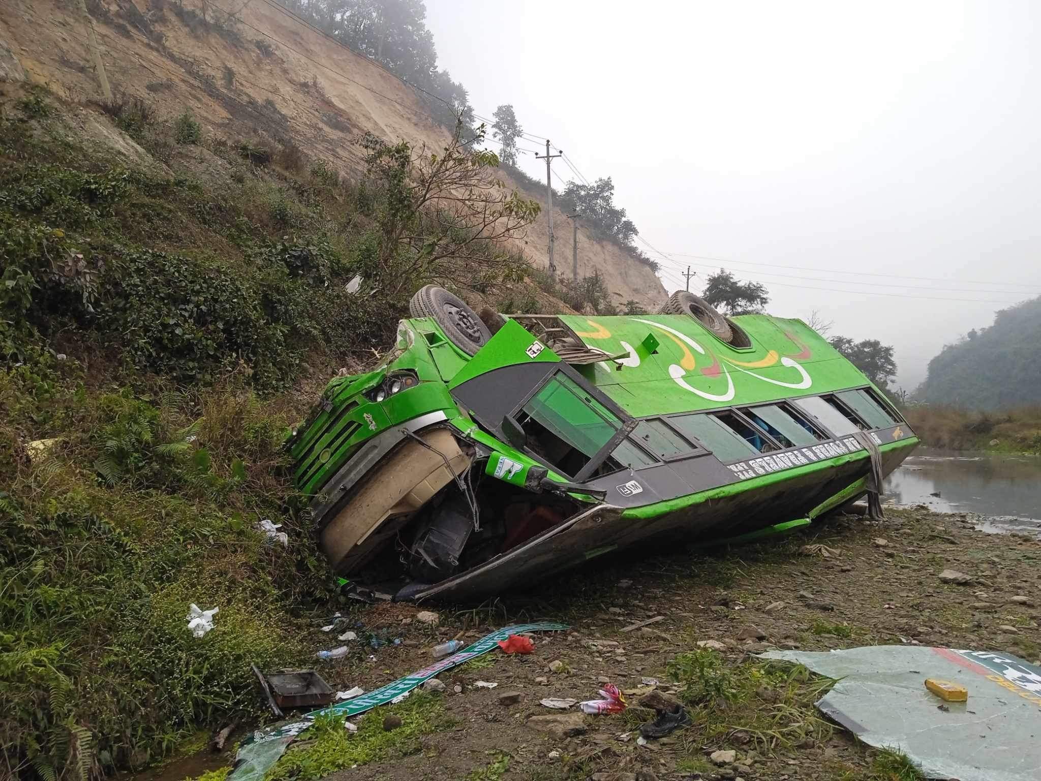 पोखरा आउँदै गरेकाे बस तनहुँमा दुर्घना हुँदा ३२ जना घाइते