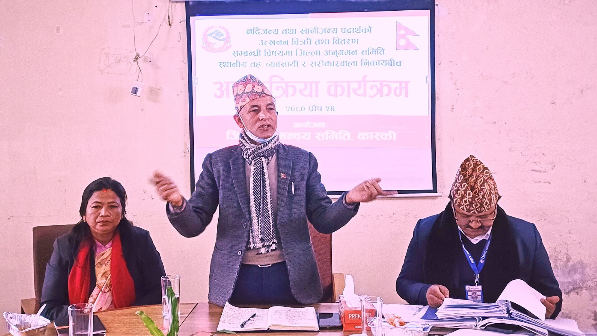 कार्यक्रम नदीजन्य तथा खानीजन्य पदार्थको उत्खनन सम्बन्धी जिल्ला अनुगमन समिति कास्कीका संयोजक लीलाधर पौडेलको अध्यक्षतामा सम्पन्न कार्यक्रमको संचालन जिल्ला समन्वय अधिकारी नवराज बरालले गरेका थिए ।
