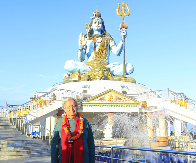 गुटेरेस बारम्बार हिमाल र फेवाताल चियाउँथे र मुहार उज्यालो पार्थे । त्यो दृश्यले महासचिवको मन पनि लोभ्याएको तथ्य उनको हर्षित मुहारमा देखिन्थ्यो । दिउँसो ४ः ३० बजे यहाँ आइपुगेका महासचिव गुटेरेसलाई स्वागत गर्न तयारी अवस्थामा थिए पोखरा महानगरका प्रमुख धनराज आचार्य र महादेवको मूर्ति निर्माण अभियानका संयोजक चन्द्रकान्त बराल । साथमा पोखरा महानगरपालिका वडा नं २२ का वडाध्यक्ष हिमलाल बराल पनि पुगे ।
