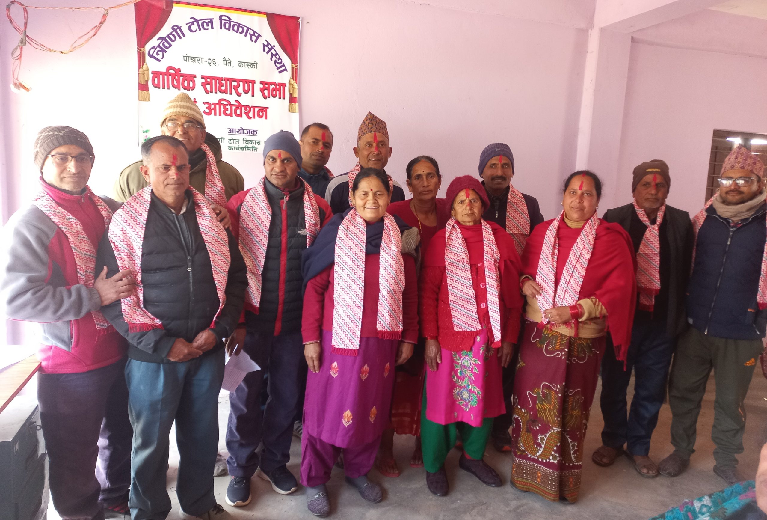 पोखरा महानगरपालिका वडा नम्बर २६ र २७ का स्थानियवासीको साझा संस्था त्रिवेणी टोल विकास संस्थाको चौथो साधारण सभा तथा दोस्रो अधिवेशनले आगामी कार्यकालका लागि कृष्णप्रसाद घिमिरेको अध्यक्षतामा नयाँ कार्यसमिति चयन गरेको छ ।
