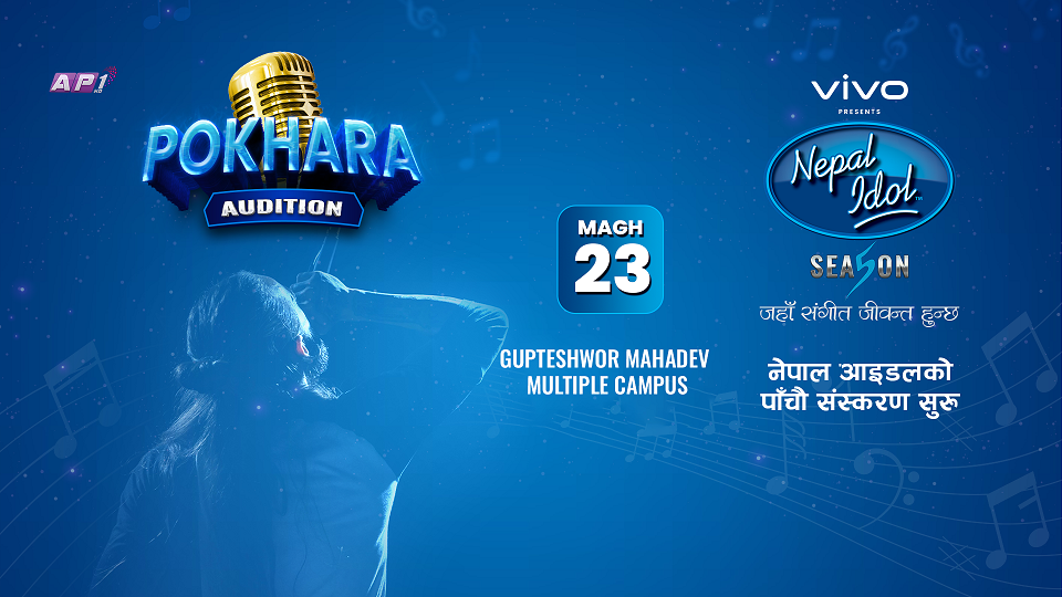 एपीवान टेलिभिजनले निर्माण तथा प्रसारण गर्दै आएको नेपाल आइडल पाँचौं संस्करणको पोखरा अडिसन माघ २३ गते हुँदैछ । पोखरा १७ छोेरेपाटनको गुप्तेश्वर महादेव बहुमुखी क्याम्पसमा अडिसन हुन लागेको हो ।