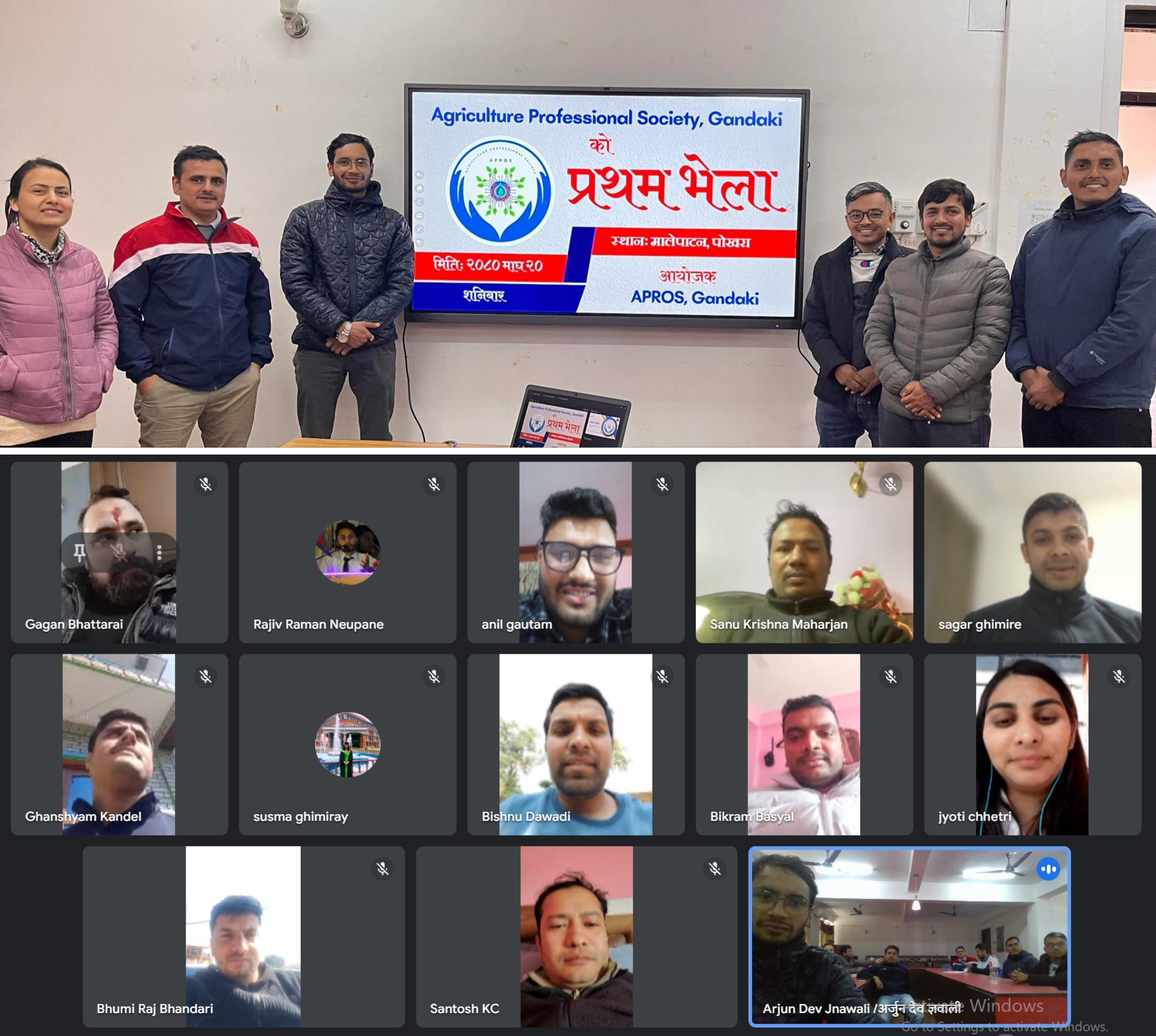 शनिबार भएको भेलाले एग्रिकल्चर प्रोफेसनल सोसाइटी, गण्डकी (एप्रोस) गठन भएको छ । अर्जुनदेव ज्ञवालीको संयोजकत्वमा रहेको समितिमा ज्योति क्षेत्री, नारायणप्रसाद पाठक, पवन थापामगर, विनोद शर्मा, मिलन आचार्य र प्रकाश बस्नेत सदस्य छन् ।