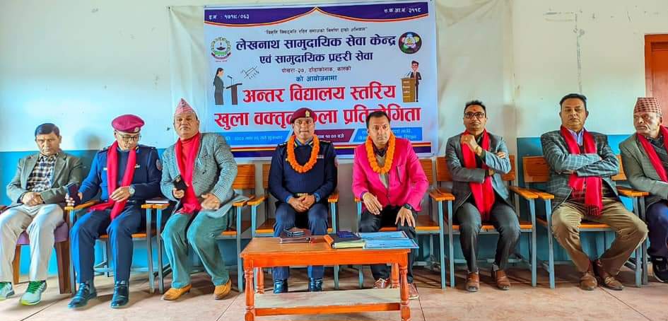 लेखनाथ सामुदायिक सेवा केन्द्र एवं सामुदायिक प्रहरी सेवाले अन्तर विद्यालय स्तरीय खुला वक्तृत्व कला प्रतियोगिता आयोजना गरेको छ । प्रतियोगितामा त्रिभुवन शान्ति माविकी मञ्जिता खड्का प्रथम, हाइवे गार्डेन एकेडेमीकी वर्षा थापा द्वितीय, डायमन्ड माविकी अंकिता आचार्य तृतीय, न्यु एरा माविकी सदीक्षा भण्डारी र लक्ष्मी आदर्श माविका विवेक अधिकारीले सान्त्वना बने ।