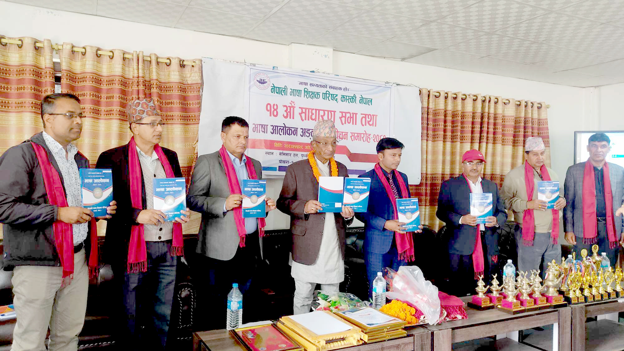 नेपाली भाषा शिक्षक परिषद्, कास्कीको चौधौँ साधारणसभा सोमबार भएको छ । ‘भाषा सभ्यताको संवाहक हो’ भन्ने मूल मन्त्रका साथ स्थापना भई नेपाली भाषा शिक्षणसँग सम्बन्धित शिक्षक केन्द्रित र विद्यार्थी केन्द्रित कार्यक्रमका साथै भाषिक अनुसन्धानमूलक कार्य गर्दै आएको परिषद्ले मुखपत्र ‘भाषा आलोकन’ को अंक ६ पनि सोही अवसरमा सार्वजनिक गरेको छ ।