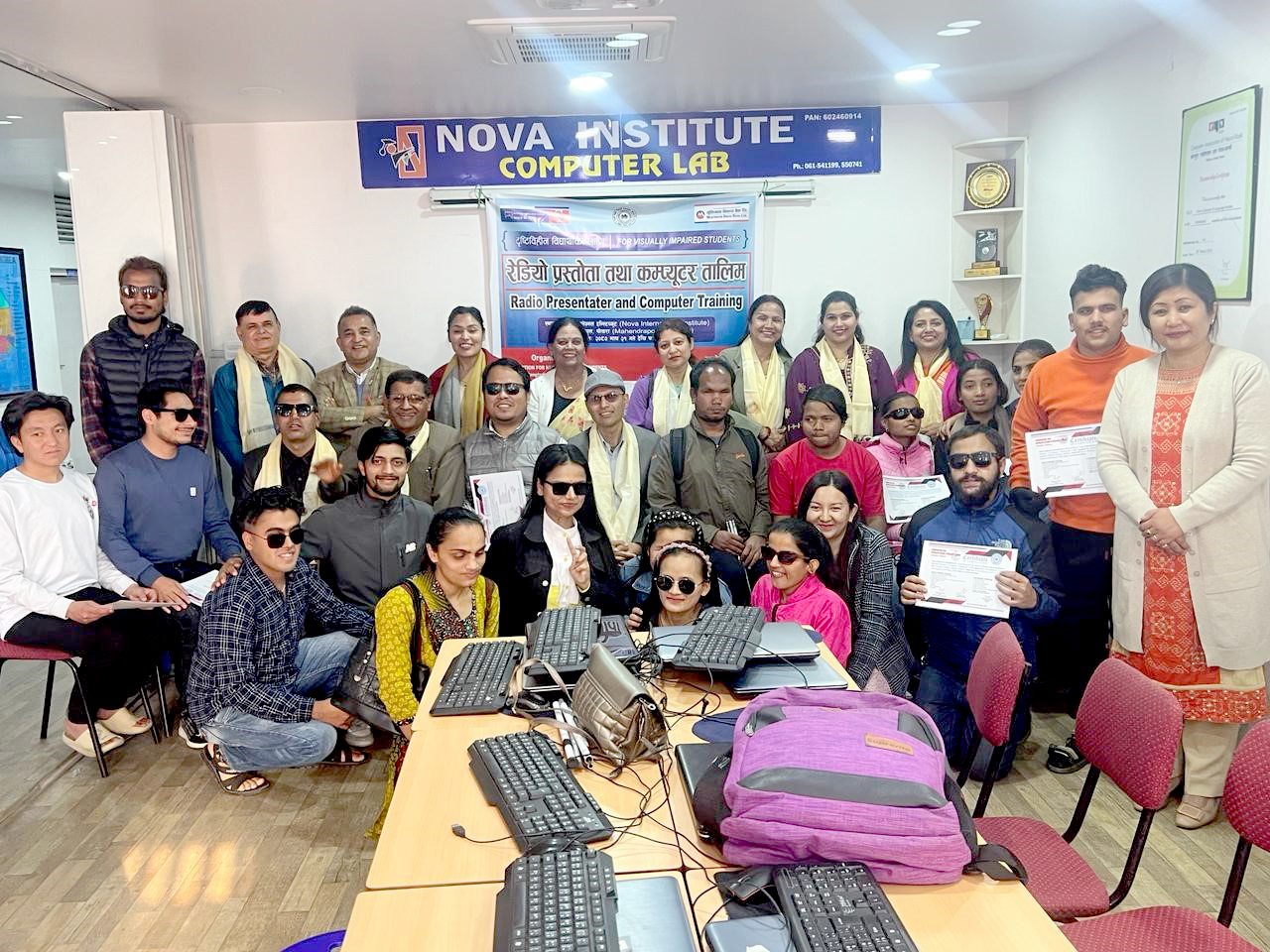 नेत्रहीन विद्यार्थी फाउण्डेसन पोखराको आयोजनामा रेडियो प्रस्तोता तथा कम्प्युटर तालिम भएको छ । दृष्टिविहीन विद्यार्थीलाई लक्षित गर्दै पोखरामा भएको ५ हप्ते तालिम शनिबार सकिएको हो ।