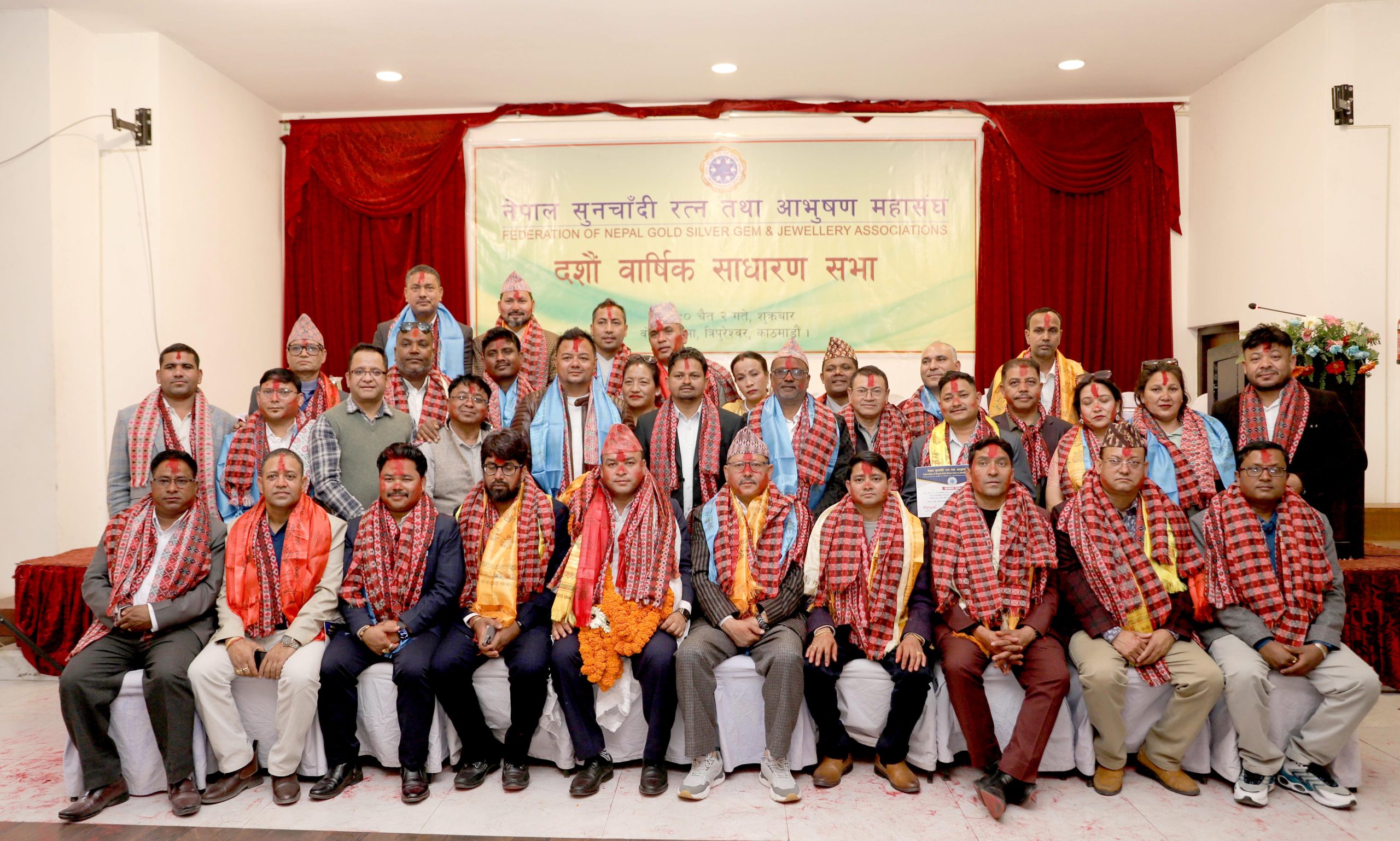 शुक्रबारबाट काठमाडौंमा सुरु नेपाल सुनचाँदी रत्न तथा आभूषण महासंघको १० औं अधिवेशनबाट किसान सुनारको नेतृत्वका ३ वर्षे कार्यकालका लागि नयाँ नेतृत्व चयन भएको हो ।