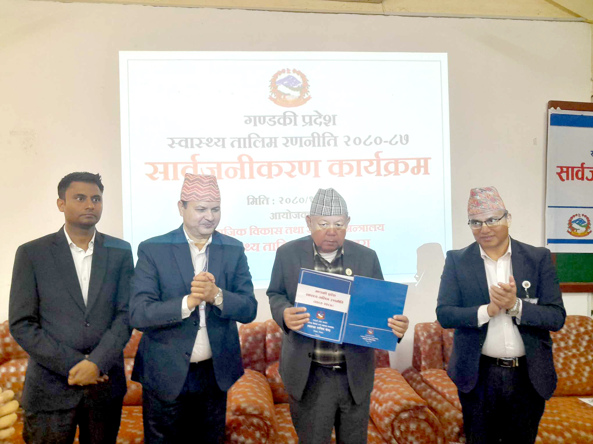 स्वास्थ्य तालिम केन्द्र पोखराले मंगलबार आयोजना गरेको कार्यक्रमाम गण्डकी प्रदेश स्वास्थ्य रणनीति (२०८०–२०८७) स्वास्थ्य तथा सामाजिक विकास मन्त्री महेन्द्रबहादुर जिसीले सार्वजनिक गरे । यसमा सात रणनीति, १२ कार्यनीति र ७१ कार्यक्रम छन् ।