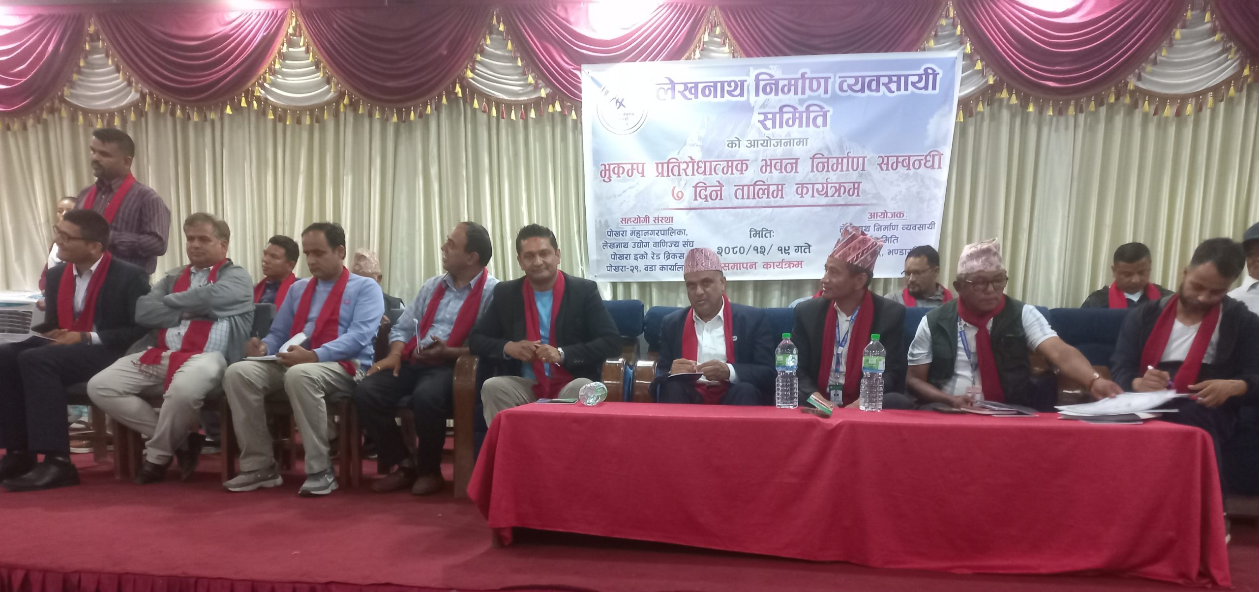 लेखनाथ निर्माण व्यवसायी समितिले व्यवसायी मजदुरहरुका लागि भुकम्प प्रतिरोधात्मक भवन निर्माण सम्वन्धि सात दिने तालिम प्रदान गरेको छ ।