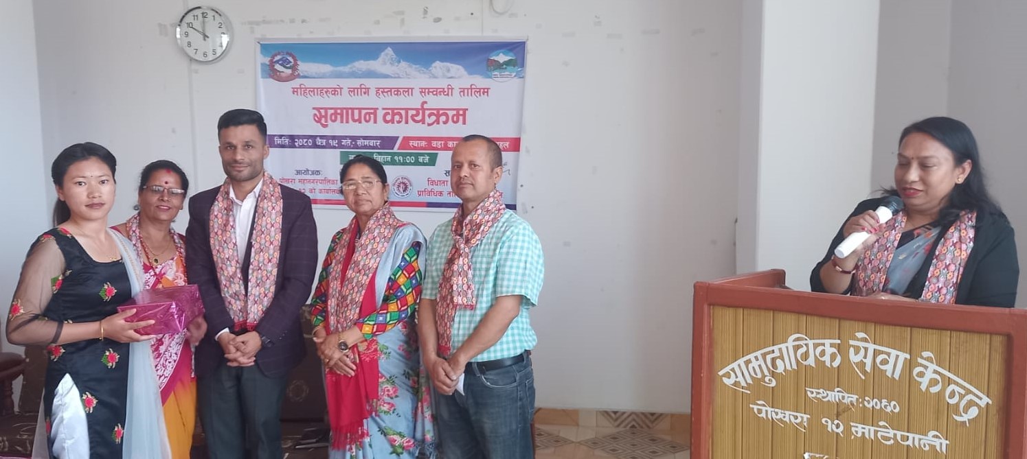 पोखरा महानगरपालिका वडा नम्बर १२ का अध्यक्ष सन्तोष बास्तोलाले आफूले सिकेको सीपबाट सामूहिक रूपमा उद्यम गरी उत्पादनमा जोडिने महिला समूहलाई वडा कार्यालयले सहयोग प्रतिवद्धता गरेका छन् ।