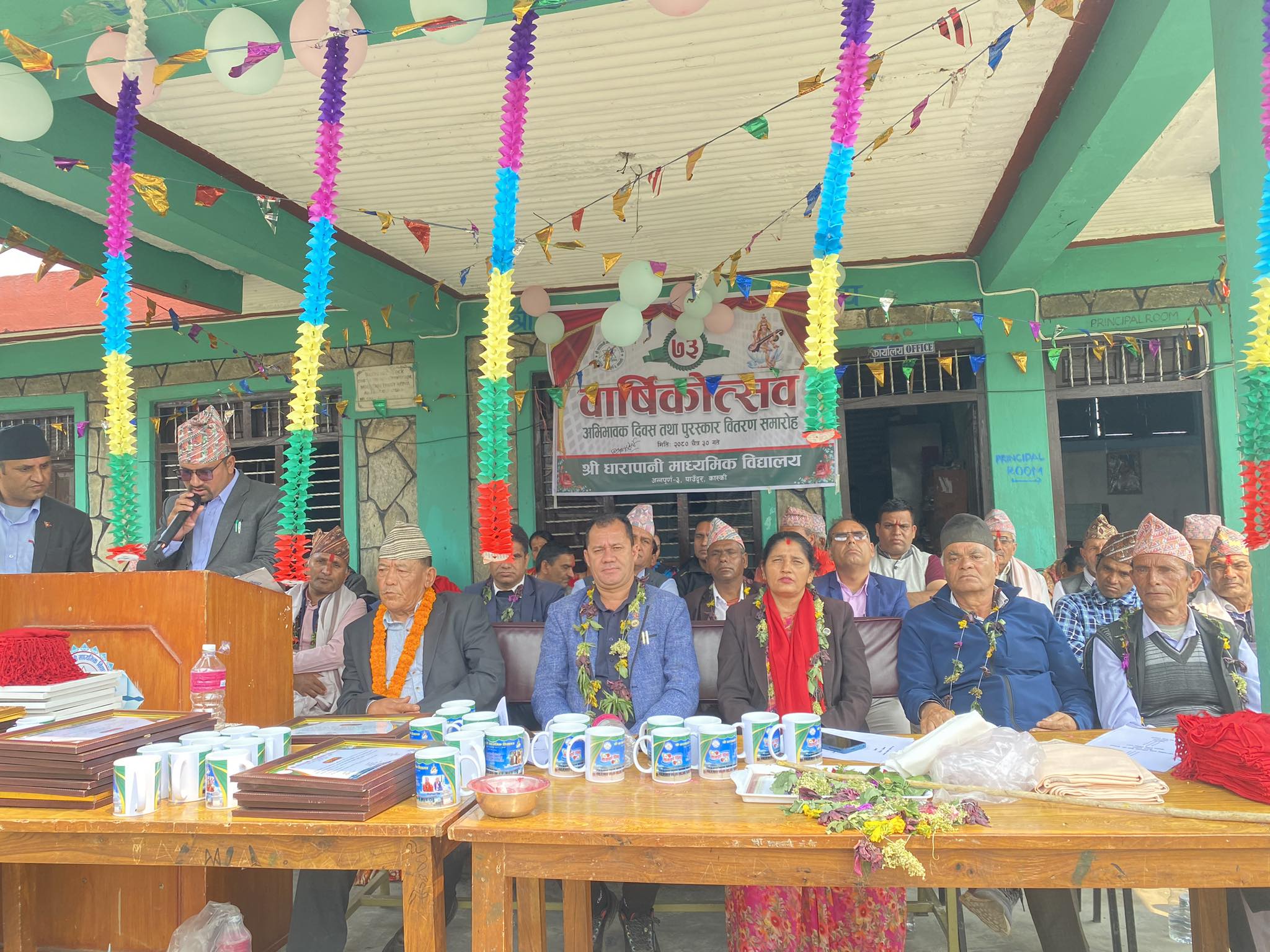 अन्नपूर्ण गाउँपालिका वडा नं ३ स्थित धारापानी माध्यामिक विद्यालयको वार्षिकोत्सव, अभिभावक दिवश तथा पुरस्कार वितरण कार्यक्रम सम्पन्न भएको छ । कार्यक्रमको अन्नपूर्ण गाउँपालिकाका प्रमुख विष्णुबहादुर केसीले उद्घाटन गरेका थिए ।