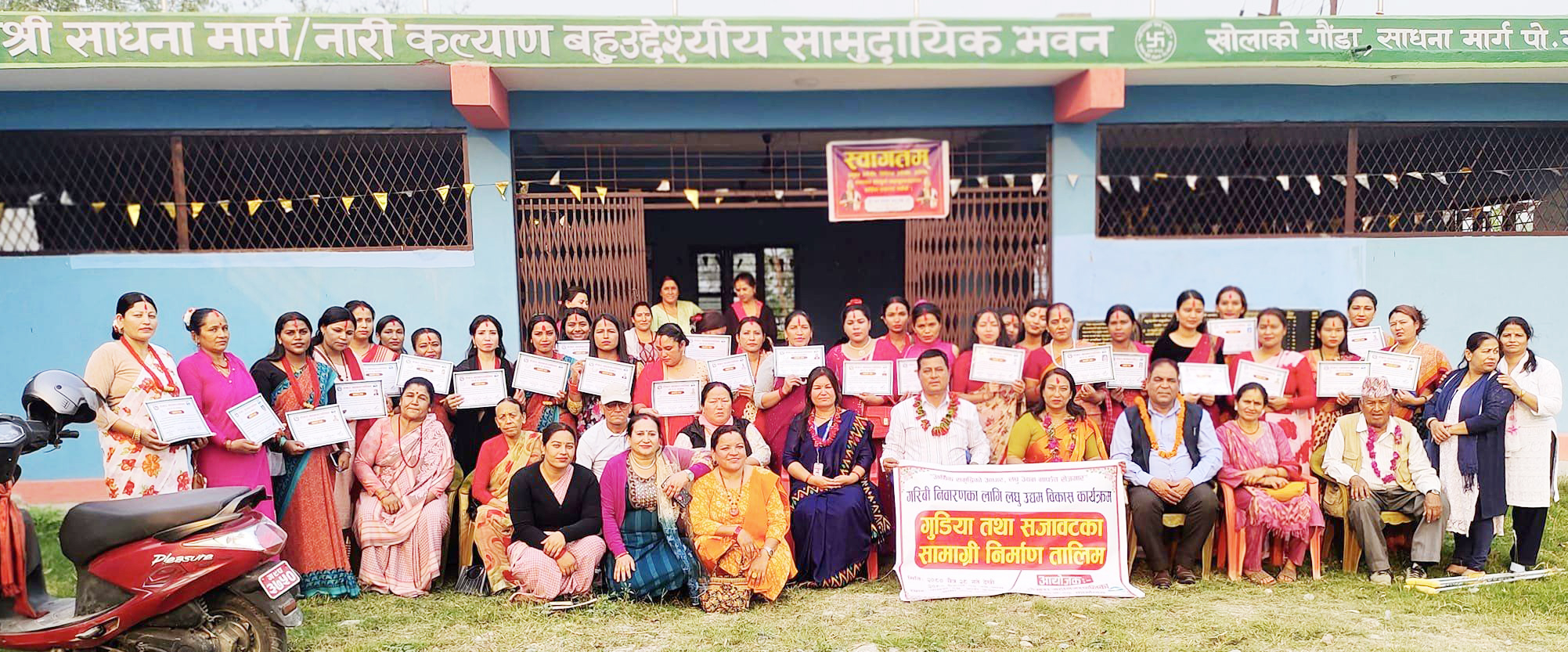 महिलाका लागि १५ दिने गुडिया तथा सजावटका सामग्री निर्माण तालिमको समापनका क्रममा प्रशिक्षार्थीलाई प्रमाणपत्र वितरण गर्दै कार्कीले भने फुर्सदको समयमा उत्पादन गरेका चिज खेर गएन भने फाइदा व्यक्तिलाई नै हुने जनाए ।